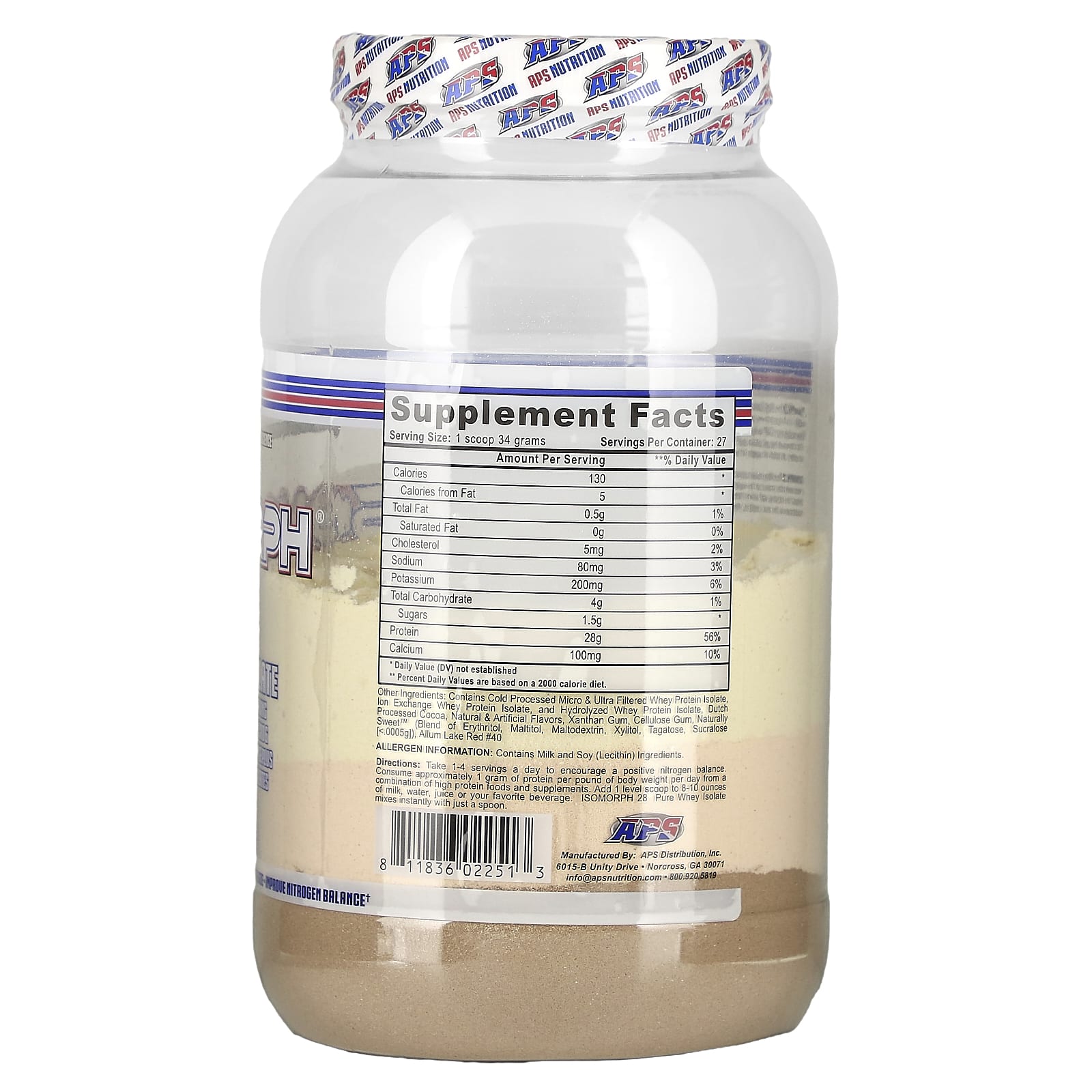 Принимайте 1–4 порции в день для поддержания положительного азотного баланса. Употребляйте примерно 1 грамм белка на фунт массы тела в день за счет сочетания продуктов с высоким содержанием белка и добавок. Добавьте 1 мерную ложку без горки в 240–300 мл (8–10 унций) молока, воды, сока или вашего любимого напитка. Isomorph 28 Pure Isolate мгновенно смешивается с помощью всего лишь ложки.