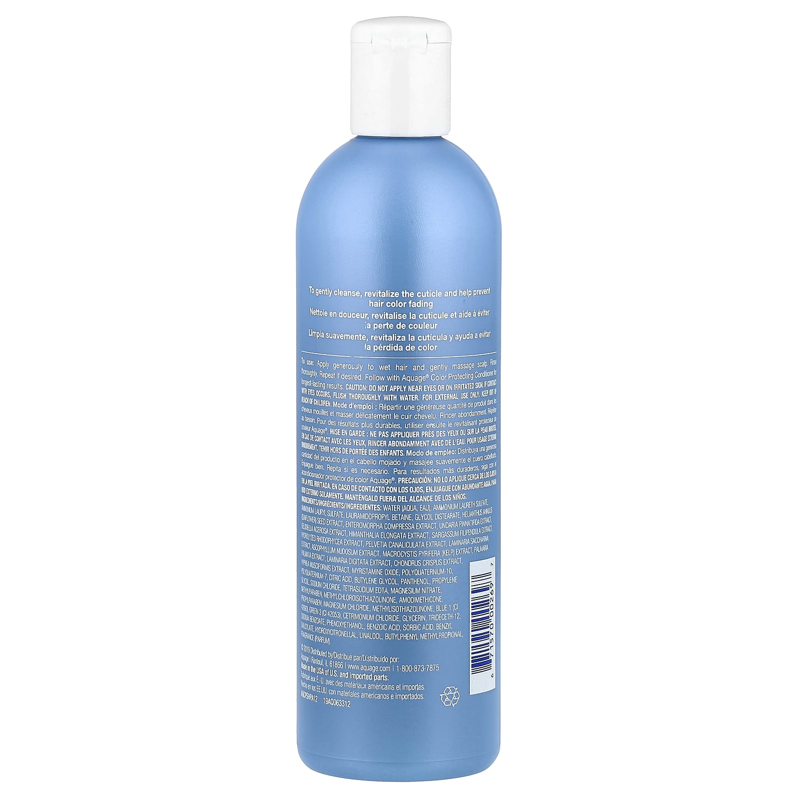 Обильно нанесите на влажные волосы и аккуратно помассируйте кожу головы. Тщательно смойте водой. При необходимости повторите. Используйте вместе с кондиционером для защиты цвета Aquage® для сохранения результата на более длительный срок.