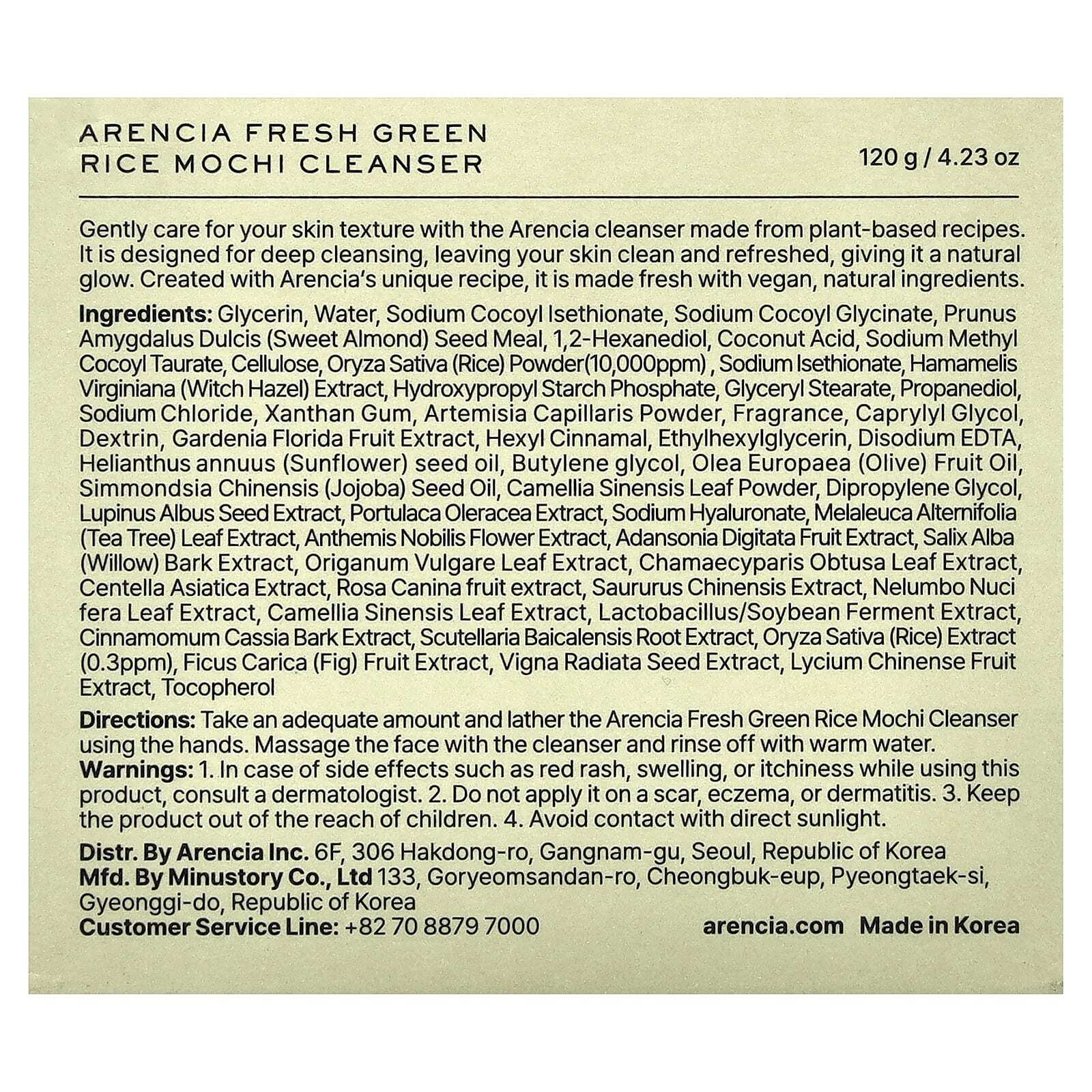 Возьмите достаточное количество очищающего средства со свежим зеленым рисом Arencia и вспеньте руками. Помассируйте лицо очищающим средством и смойте теплой водой.