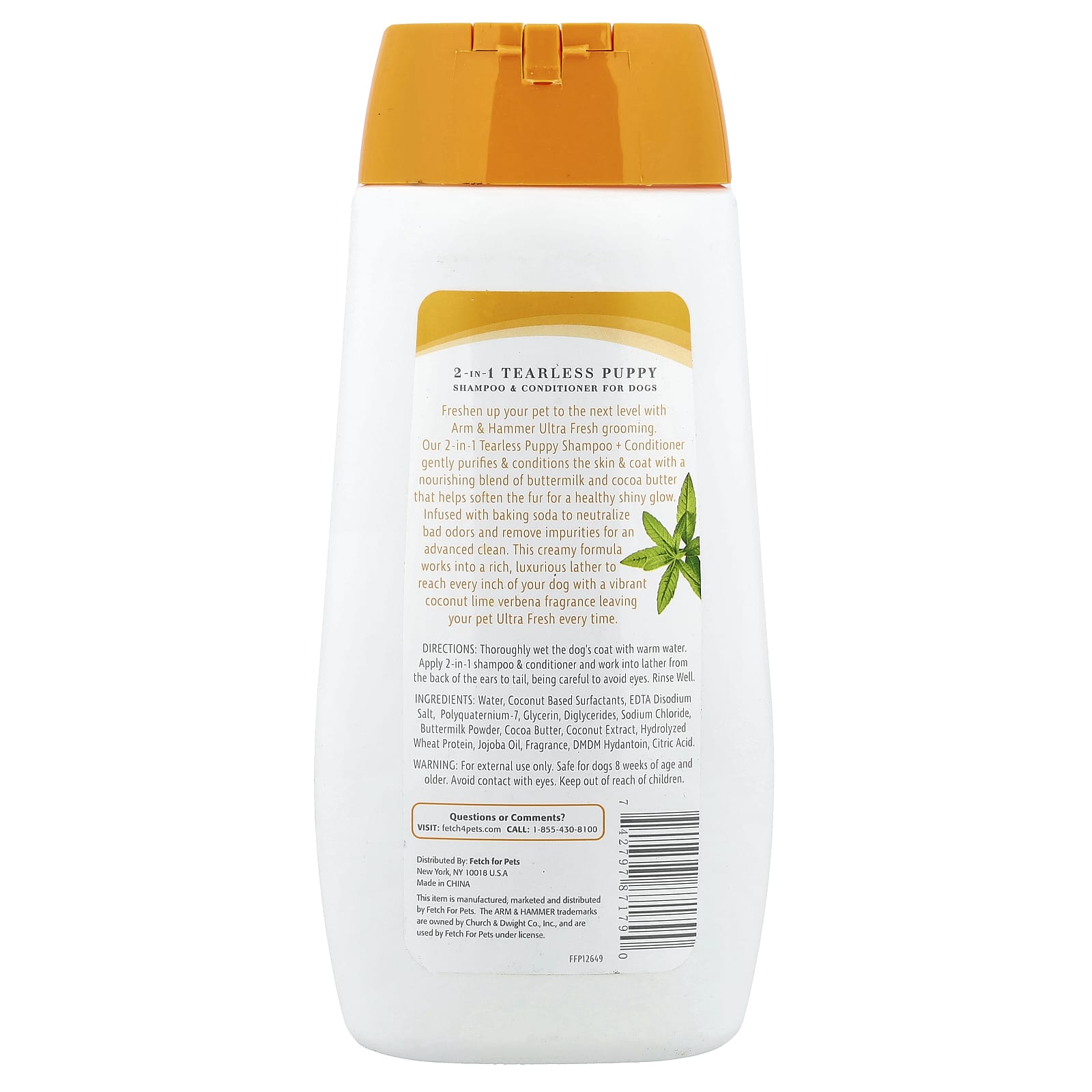 Освежите своего питомца с помощью средства для ухода Ultra Fresh от Arm & Hammer. Наш шампунь и кондиционер для щенков 2 в 1 бережно очищает и ухаживает за кожей и шерстью с помощью питательной смеси пахты и какао-масла, которые помогают смягчить шерсть и придать ей здоровый блеск. Содержит пищевую соду, которая нейтрализует неприятные запахи и удаляет загрязнения, обеспечивая тщательное очищение. Этот кремообразный состав образует обильную роскошную пену, которая проникает в каждый клеточку вашей собаки с ярким ароматом кокоса, лайма и вербены и каждый раз дарит вашему питомцу невероятную свежесть.