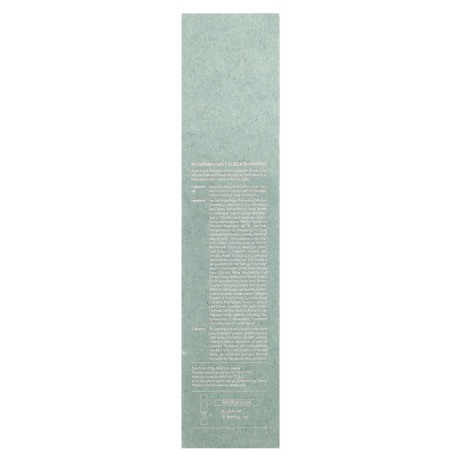 Солевой шампунь-скраб с частицами соли Андского озера и экстрактом розмарина отшелушивает и очищает кожу головы.