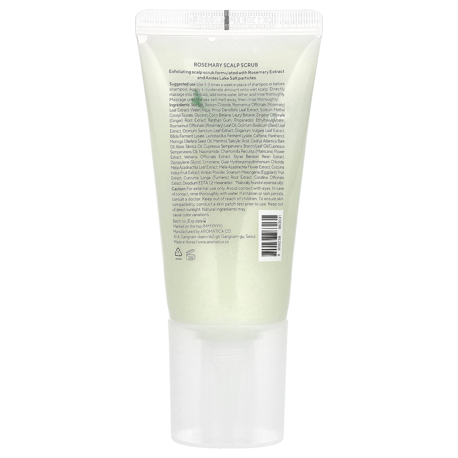 Отшелушивающий скраб для кожи головы на основе экстракта розмарина и частиц соли Андского озера.