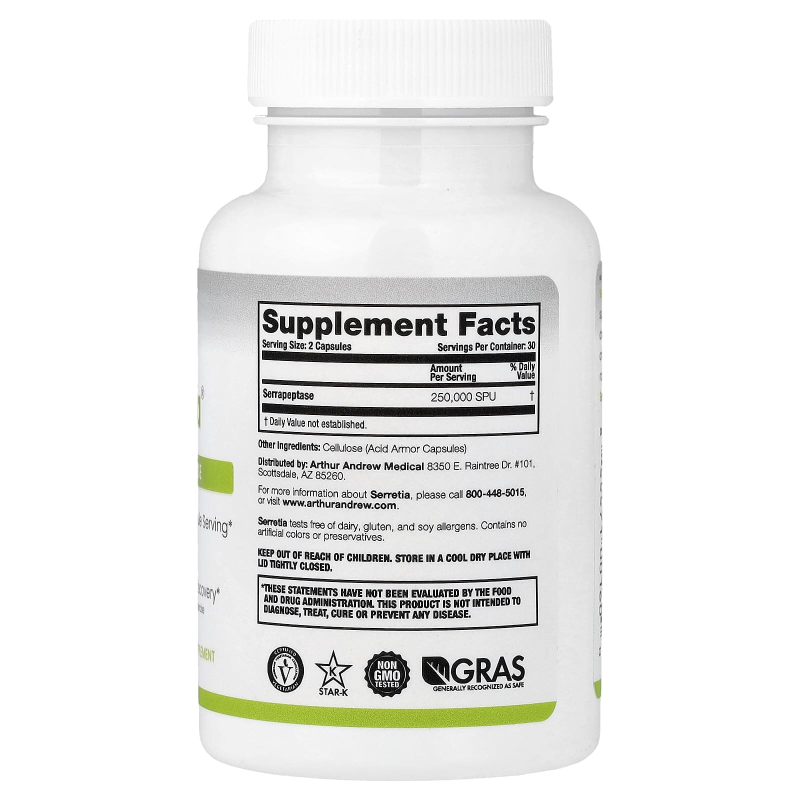 Serretia использует капсулы Acid Armor, которые защищают ферменты от желудочной кислоты без использования фталатов, которые обычно содержатся в традиционных кишечнорастворимых покрытиях.