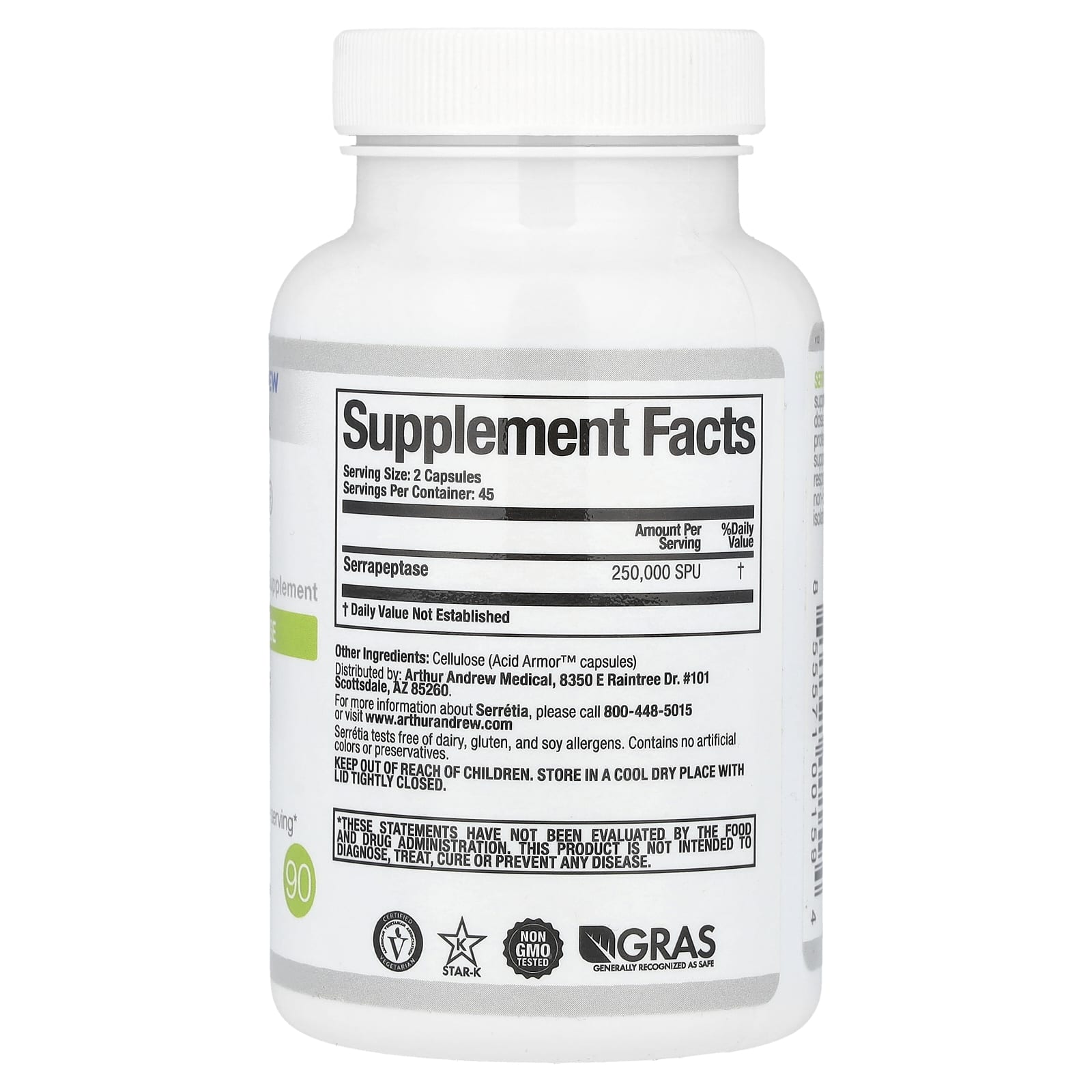 Arthur Andrew Medical, Serretia®, чистая серрапептаза, 90 капсул (125 000 SPU в 1 капсуле)