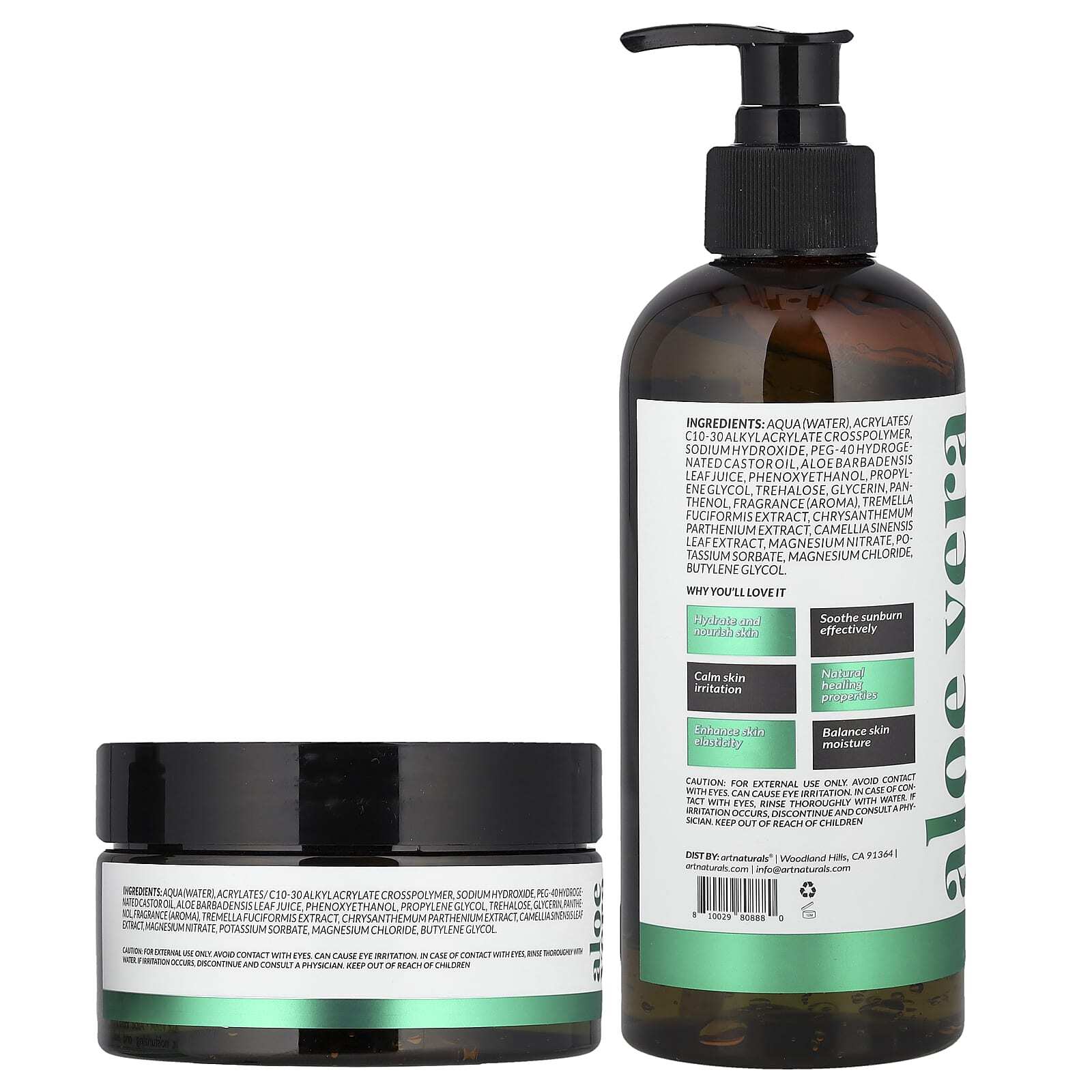 Откройте для себя успокаивающие свойства дуэта геля с алоэ вера, разработанного для удовлетворения всех ваших потребностей в уходе за кожей. Этот набор включает одну банку на 8 унций и одну бутылку на 12 унций, которые идеально подходят как для дома, так и в дороге.