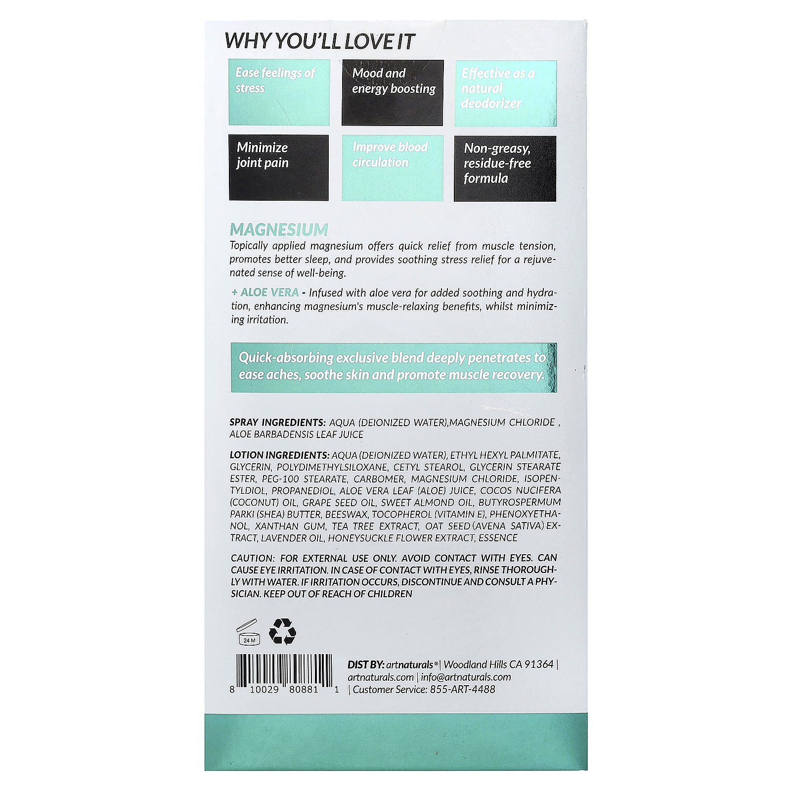 Ингредиенты для спрея: Вода (деионизированная вода), хлорид магния , сок листьев алоэ вера (Aloe barbadensis).