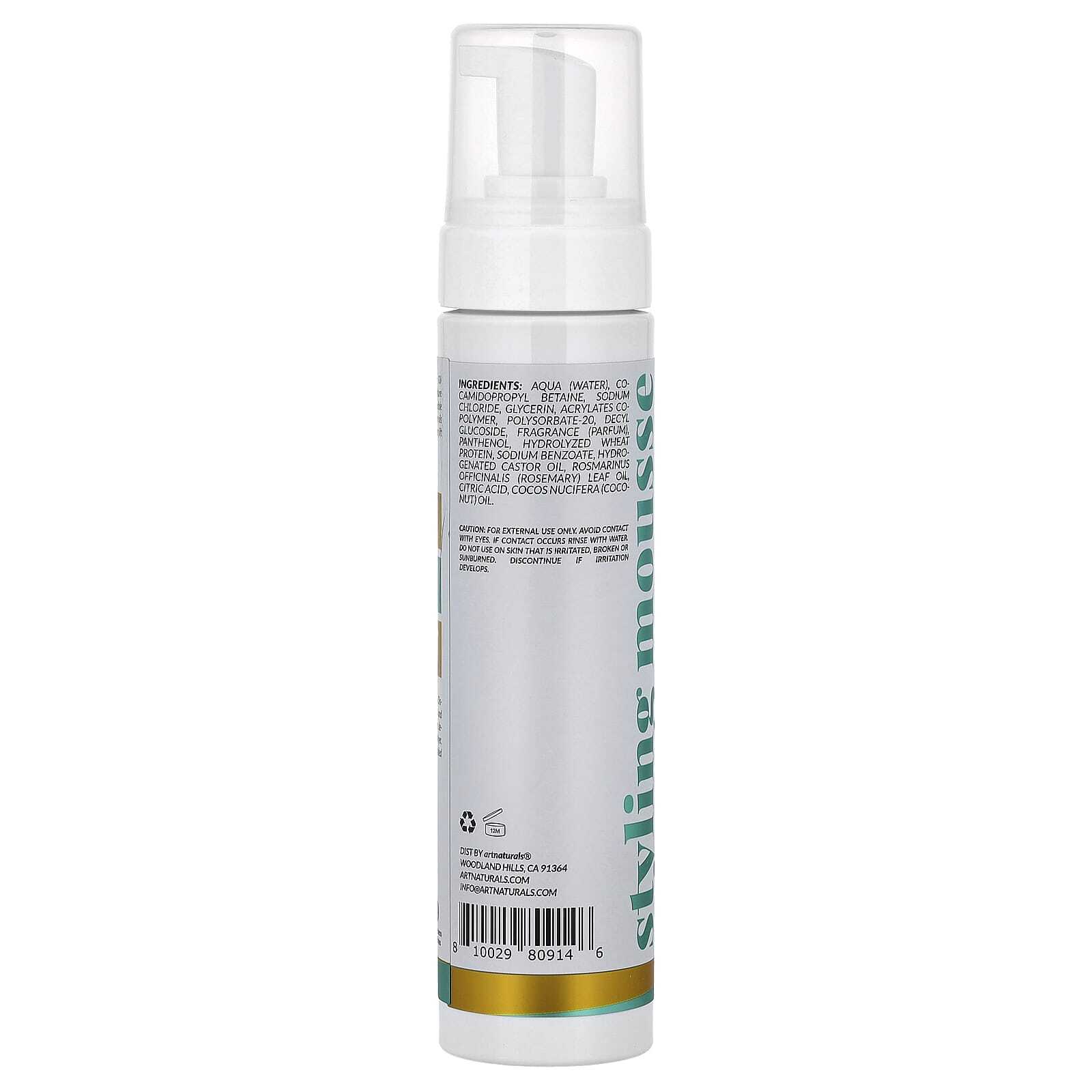 Мусс для укладки волос artnaturals® с розмарином и касторовым маслом улучшает текстуру и объем, обеспечивая легкую и гибкую фиксацию. Питательные розмарин и касторовое масло укрепляют пряди, придавая волосам гладкость и стойкость.