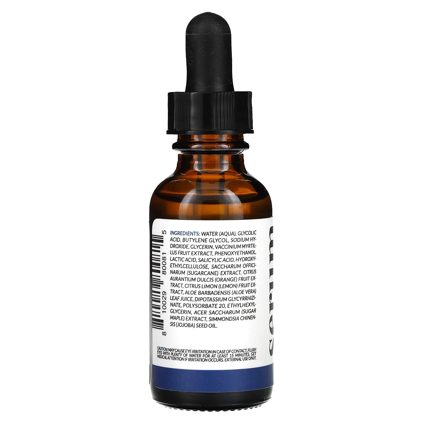 Вода, гликолевая кислота, бутиленгликоль, гидроксид натрия, глицерин, экстракт плодов черники (Vaccinium myrtillus), феноксиэтанол, молочная кислота, салициловая кислота, гидроксиэтилцеллюлоза, экстракт сахарного тростника (Saccharum officinarum), экстракт плодов апельсина (citrus aurantium dulcis), экстракт лимона (Citrus limon), сок листьев алоэ вера (Aloe barbadensis), дикалия глицирризинат, полисорбат 20, этилгексилглицерин, экстракт сахарного клена (Acer saccharum), масло семян жожоба (simmondsia chinensis).