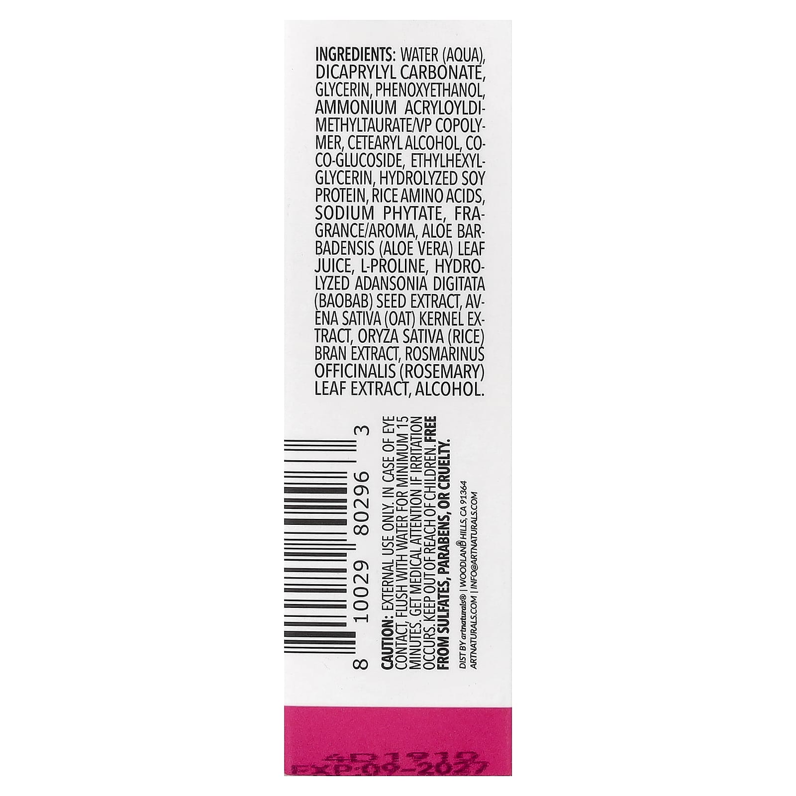 Вода (aqua) дикаприлилкарбонат, глицерин, феноксиэтанол, аммоний акрилоилдиметилтаурат/ВП сополимер, цетеариловый спирт, кокоглюкозид, этилгексилглицерин, гидролизованный белок из сои, аминокислоты риса, фитат натрия, отдушка/аромат, сок листьев алоэ вера (Aloe barbadensis), L-пролин, гидролизованный экстракт семян баобаба (Adansonia digitata), экстракт ядер овса (Avena sativa), экстракт рисовых отрубей (Oryza sativa), экстракт листьев розмарина (Rosmarinus officinalis), спирт.