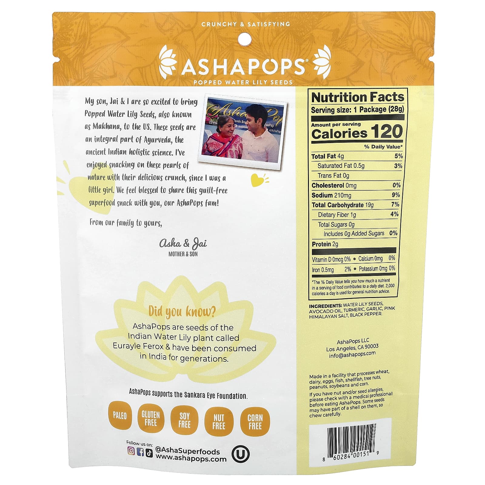 Мы с сыном Джаем очень рады привозить семена кувшинки, также известные как Махана, в США. Эти семена являются неотъемлемой частью аюрведы, древней индийской целостной науки. С детства я с удовольствием перекусывала этими природными жемчужинами с их восхитительным хрустом. Для нас большая честь поделиться этим суперфудом без чувства вины с вами, наша семья AshaPops!