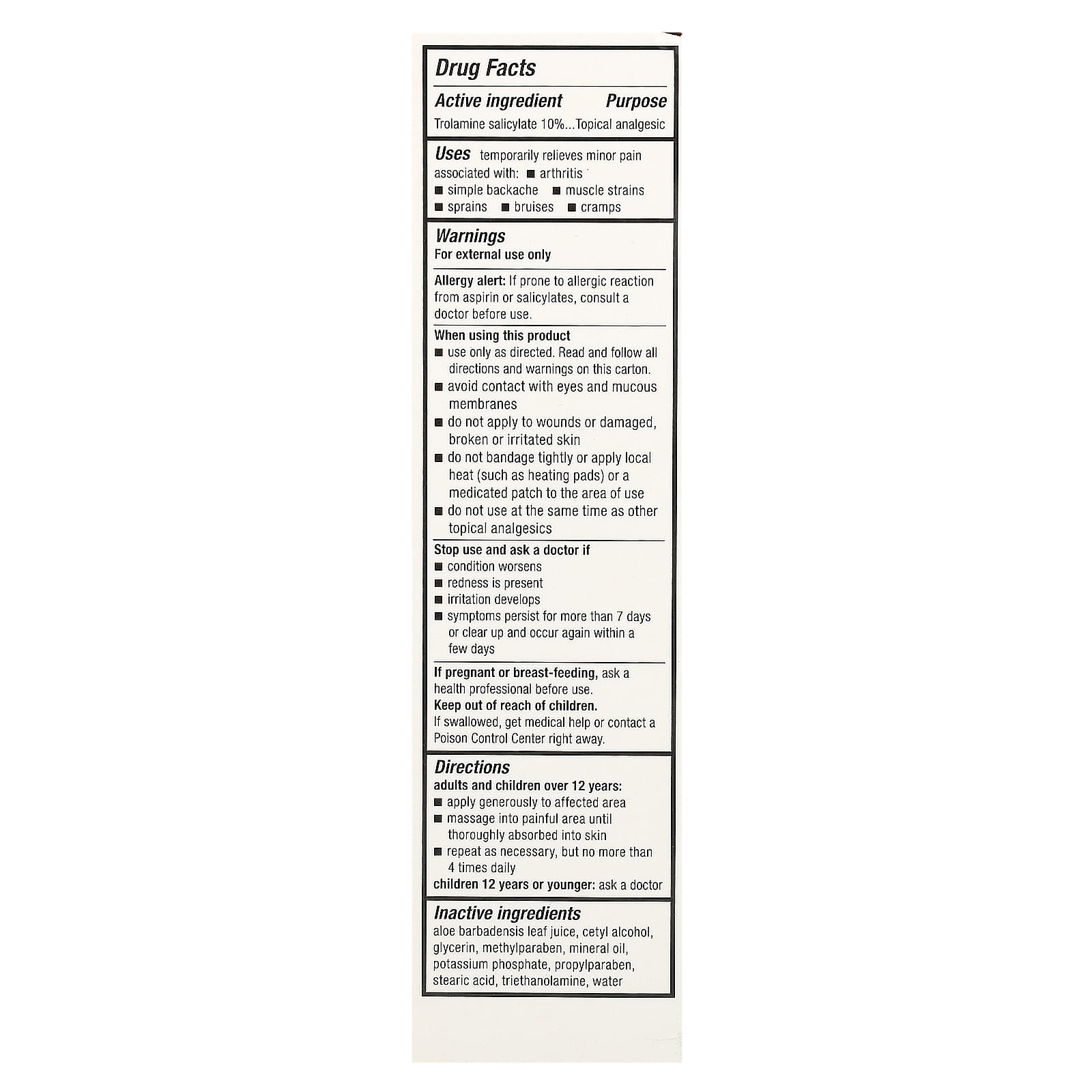 - Содержит обезболивающий крем с 10% салицилатом троламина