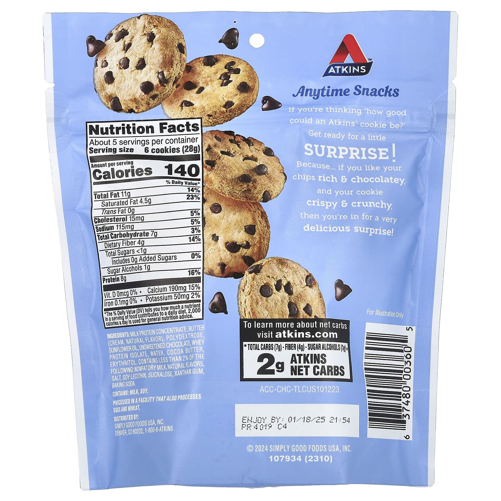 Если вы думаете, насколько полезным может быть печенье Atkins™? Приготовьтесь к небольшому сюрпризу ! Если вы любите чипсы с насыщенным шоколадным вкусом, а печенье — хрустящее и хрустящее, то вас готовит очень вкусный сюрприз!