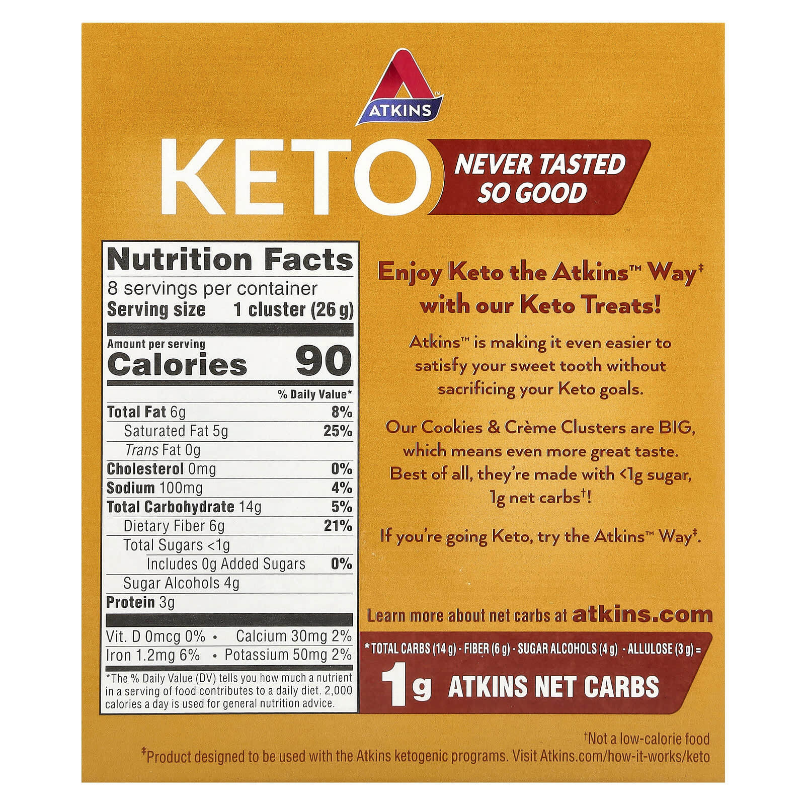 Кето-печенье и кремы Atkins ™ имеют большой размер. Большое печенье со вкусом сливок. Большая хрустящая текстура. Насыщенный вкус без тонны сахара и чистых углеводов.