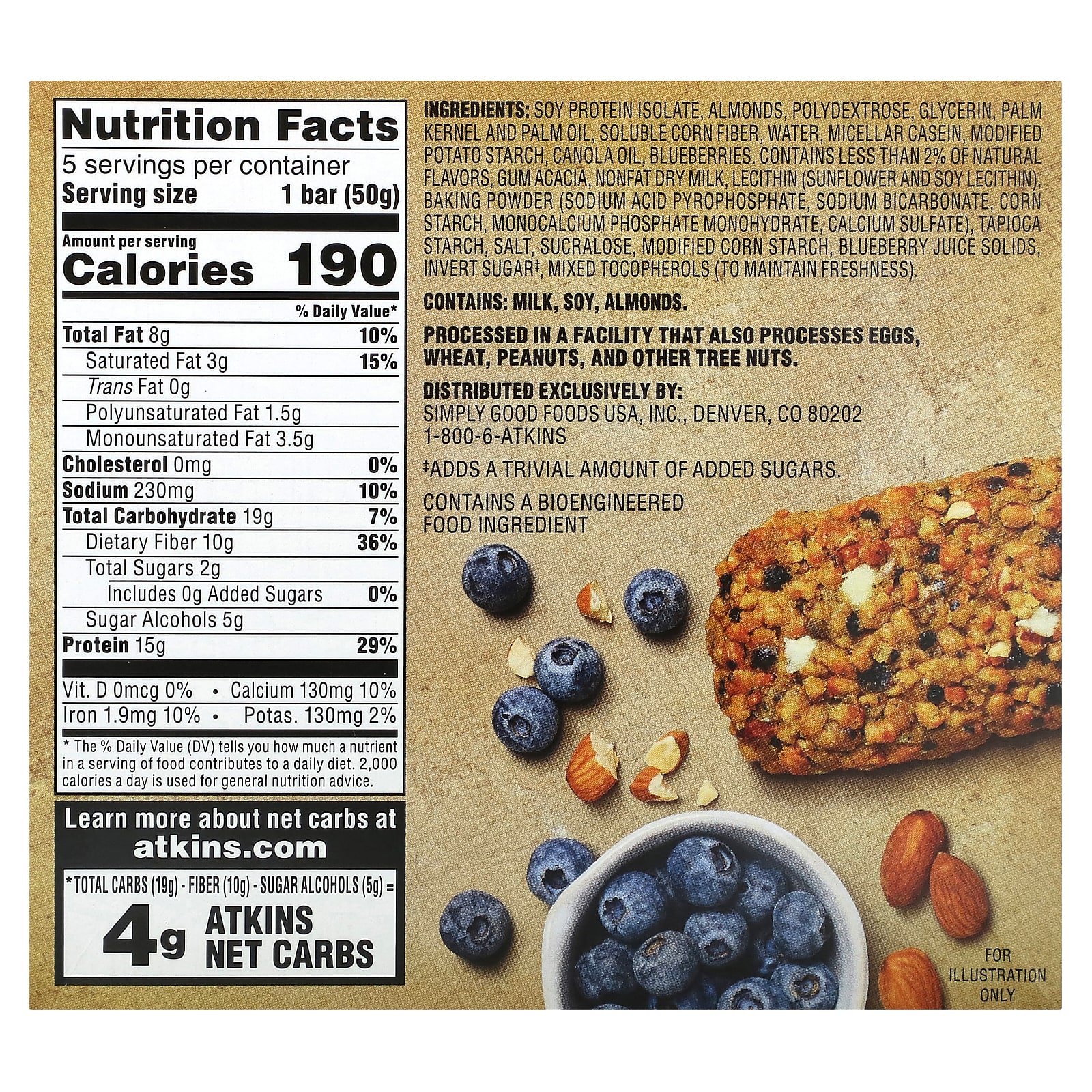 * Всего углеводов (19 г), клетчатки (10 г), сахарных спиртов (5 г) = 4 г чистых углеводов Аткинса.