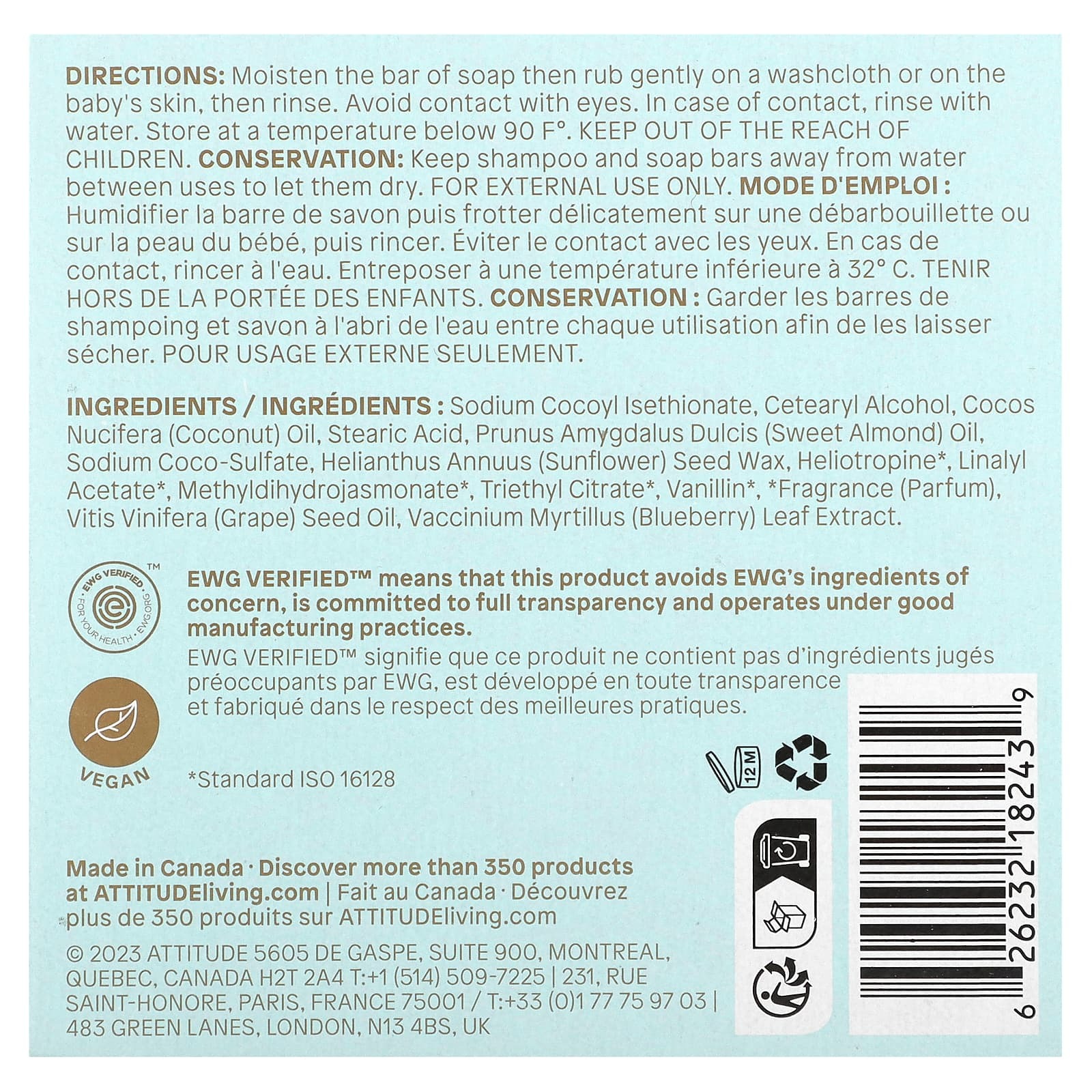 Кокоил изетионат натрия, цетеариловый спирт, кокосовое масло (Cocos nucifera), стеариновая кислота, масло сладкого миндаля (Prunus amygdalus dulcis), кокосульфат натрия, воск из семян подсолнечника (Helianthus annuus), гелиотропин *, линалил ацетат*, метил дигидрожасмонат*, триэтилцитрат*, ванилин*, * отдушка (парфюмерная композиция), масло из виноградных косточек (Vitis vinifera), экстракт листьев голубики (Vaccinium myrtillus).