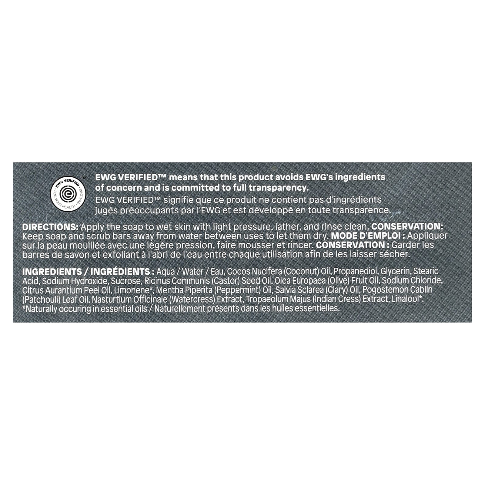 Вода, кокосовое масло (Cocos nucifera), пропандиол, глицерин, гидроксид натрия, пальмитиновая кислота, сахароза, стеариновая кислота, семена клещевины (Ricinus communis) и масло из плодов оливы (Olea europaea), хлорид натрия, масло из цедры апельсина (Citrus aurantium dulcis), масло перечной мяты (limonene mentha piperita), масло мускатного шалфея (Salvia sclarea), масло листьев пачули (Pogostemon cablin), экстракт кресс-салата (Lasturtium officinale), экстракт настурции (Tropaeolum majus), линалоол*.