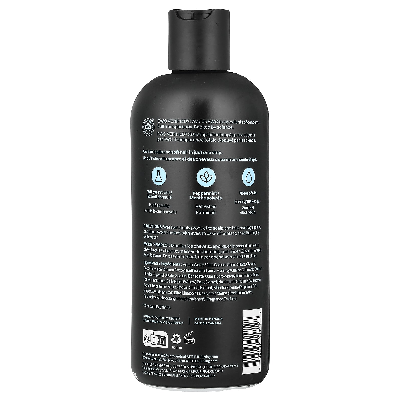 вода (Aqua), кокосульфат натрия, глицерин, кокоглюкозид, кокоил изетионат натрия, лаурил гидроксисултаин, лимонная кислота, хлорид натрия, глицерил олеат, бензоат натрия, гуар гидроксипропилтримония хлорид, сорбат калия, экстракт коры черной ивы (Salix nigra), экстракт жерухи (Nasturtium officinale), экстракт кресс-салата (Tropaeolum majus), масло перечной мяты (Mentha piperita), масло можжевельника виргинского (Juniperus virginiana)*, этил линалоол*, эвкалиптол*, метил дигидрожасмонат*, тетраметил ацетилоктагидронафталины*