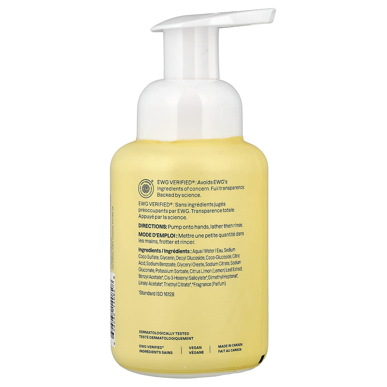 Вода, кокосульфат натрия, глицерин, децилглюкозид, коко-глюкозид, лимонная кислота, бензоат натрия, глицерил олеат, цитрат натрия, Глюконат натрия, сорбат калия, экстракт листьев лимона (Citrus limon), бензилацетат*, цис-3-гексенил салицилат*, диметил гептеналь*, линалил ацетат*, триэтилцитрат*, отдушка (парфюмерная композиция)*.