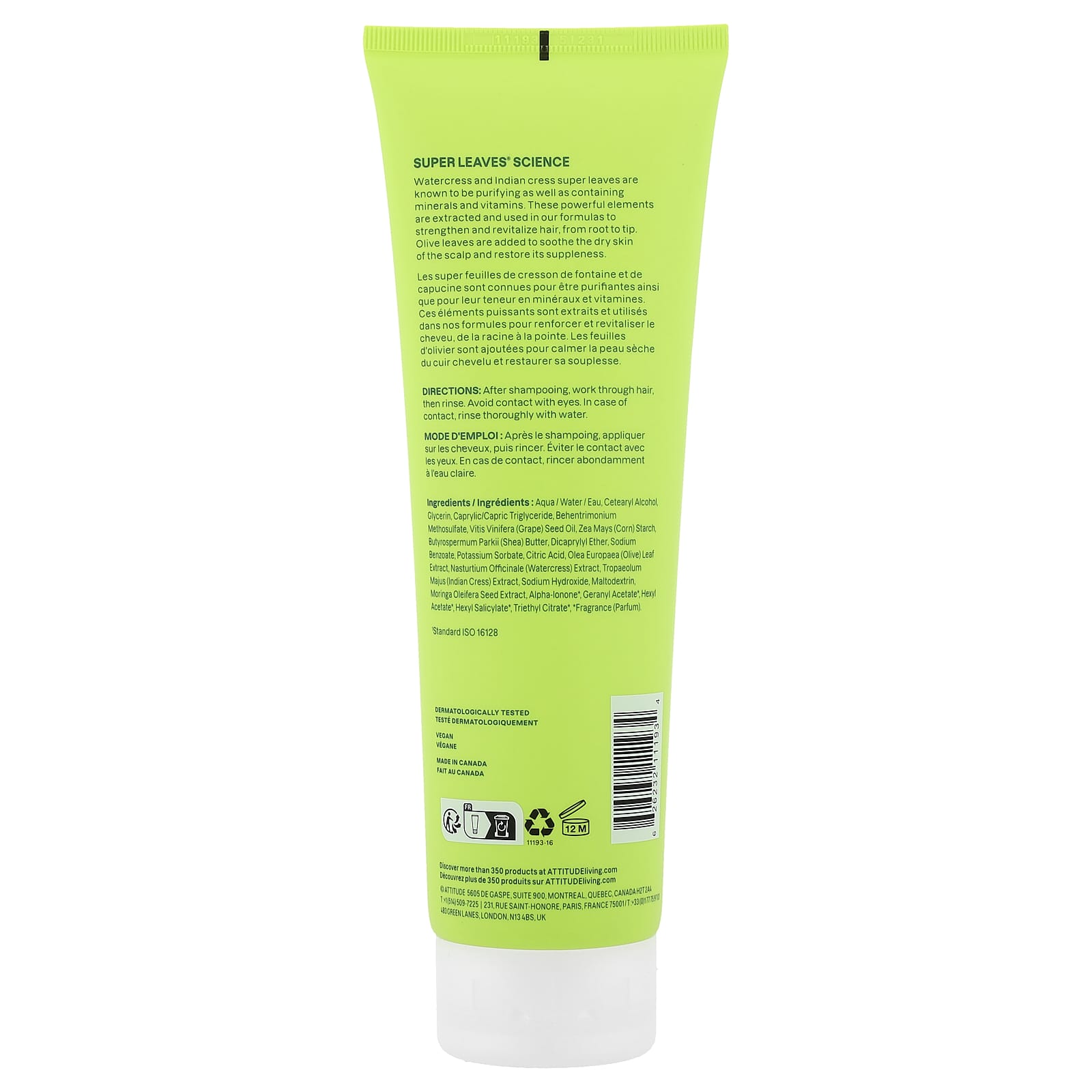 Известно, что суперлистья жерухи и индийского кресс-салата очищают, а также содержат минералы и витамины. Эти мощные элементы извлекаются и используются в наших формулах для укрепления и восстановления волос от корней до кончиков. Листья оливкового дерева добавлены, чтобы успокоить сухую кожу головы и восстановить ее эластичность.