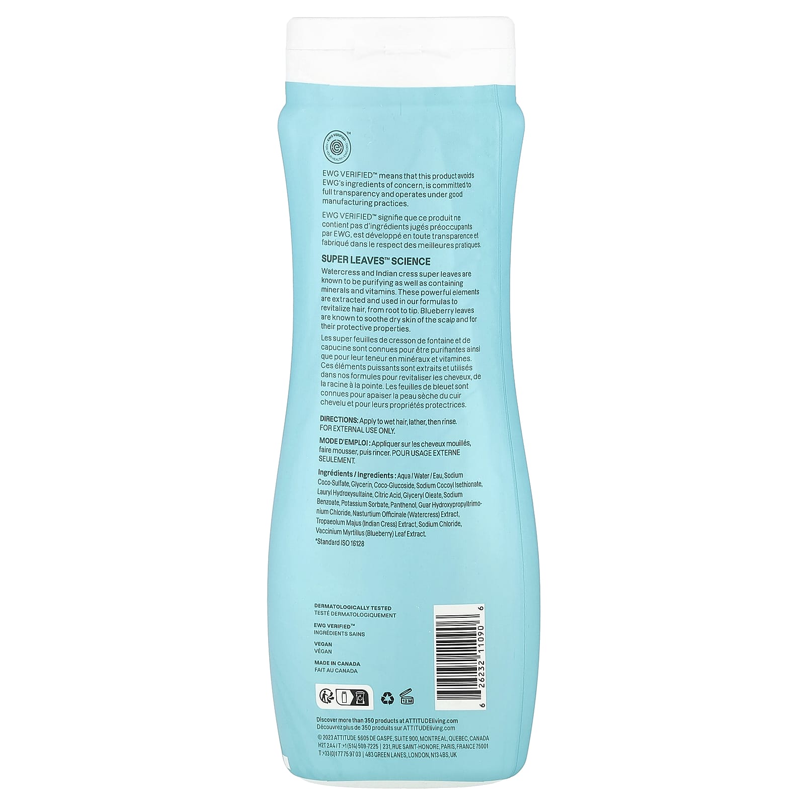 Вода, кокосульфат натрия, глицерин, кокоглюкозид, кокоил изетионат натрия, лаурил гидроксисултаин, лимонная кислота, глицерил олеат, бензоат натрия, сорбат калия, пантенол, гуар гидроксипропилтримония хлорид, экстракт настурции лекарственной (Nasturtium officinale), экстракт индийского кресс-салата (Tropaeolum majus), хлорид натрия, экстракт листьев голубики (Vaccinium myrtillus).