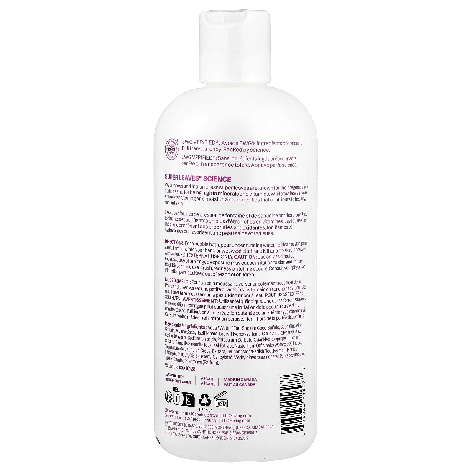 Вода/вода, коко-глюкозид, кокосульфат натрия, растительный глицерин, натрия (004) изетионат, глицерил олеат, лимонная кислота, хлорид натрия, Циамопсис tetragonoloba (Guar) Камедь, экстракт жерухи (Nasturtium officinale), экстракт кресс-салата (Tropaolummajus), мальтодекстрин, экстракт семян моринги (Moringa oleifera), экстракт листьев белого чая (Camellia sinensis), бензоат натрия, сорбат калия, триэтилцитрат*, пентадекалактон*, цис-3-гексенил салицилат*, цитронеллилацетат*, этил гексаноат*, * отдушка (парфюмерная композиция).