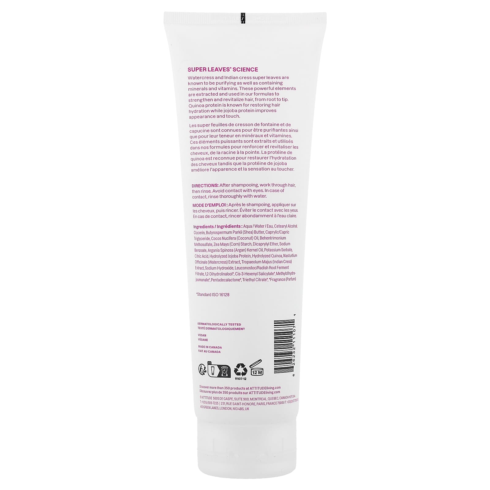 Известно, что суперлистья жерухи и индийского кресс-салата очищают, а также содержат минералы и витамины. Эти мощные элементы извлекаются и используются в наших формулах для укрепления и восстановления волос от корней до кончиков. Протеин киноа известен своей способностью восстанавливать увлажнённость волос, а протеин жожоба улучшает их внешний вид и состояние.