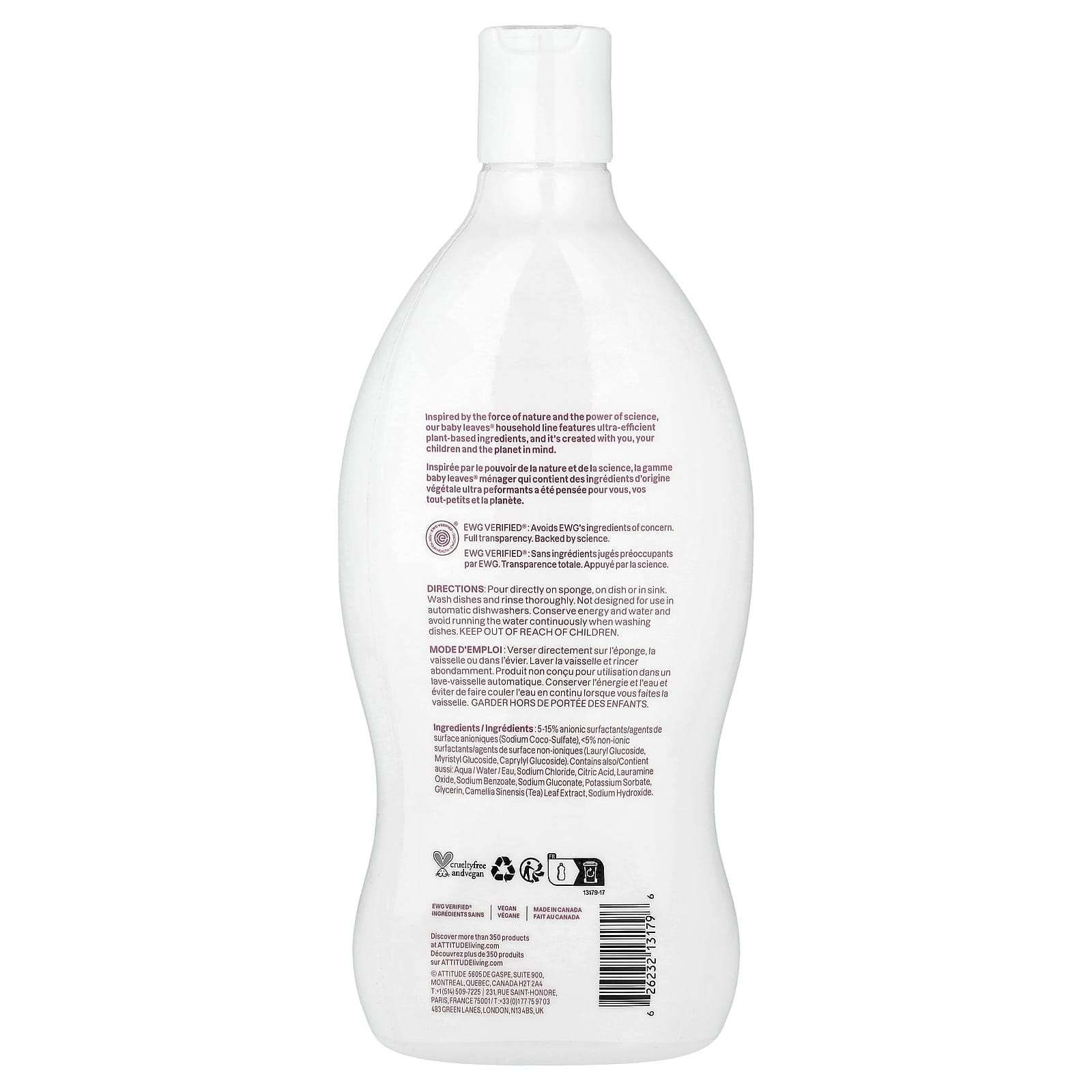 ATTITUDE, Baby Leaves®, бутылочка с жидкостью для мытья посуды, без запаха, 700 мл (23,7 жидк. унции)