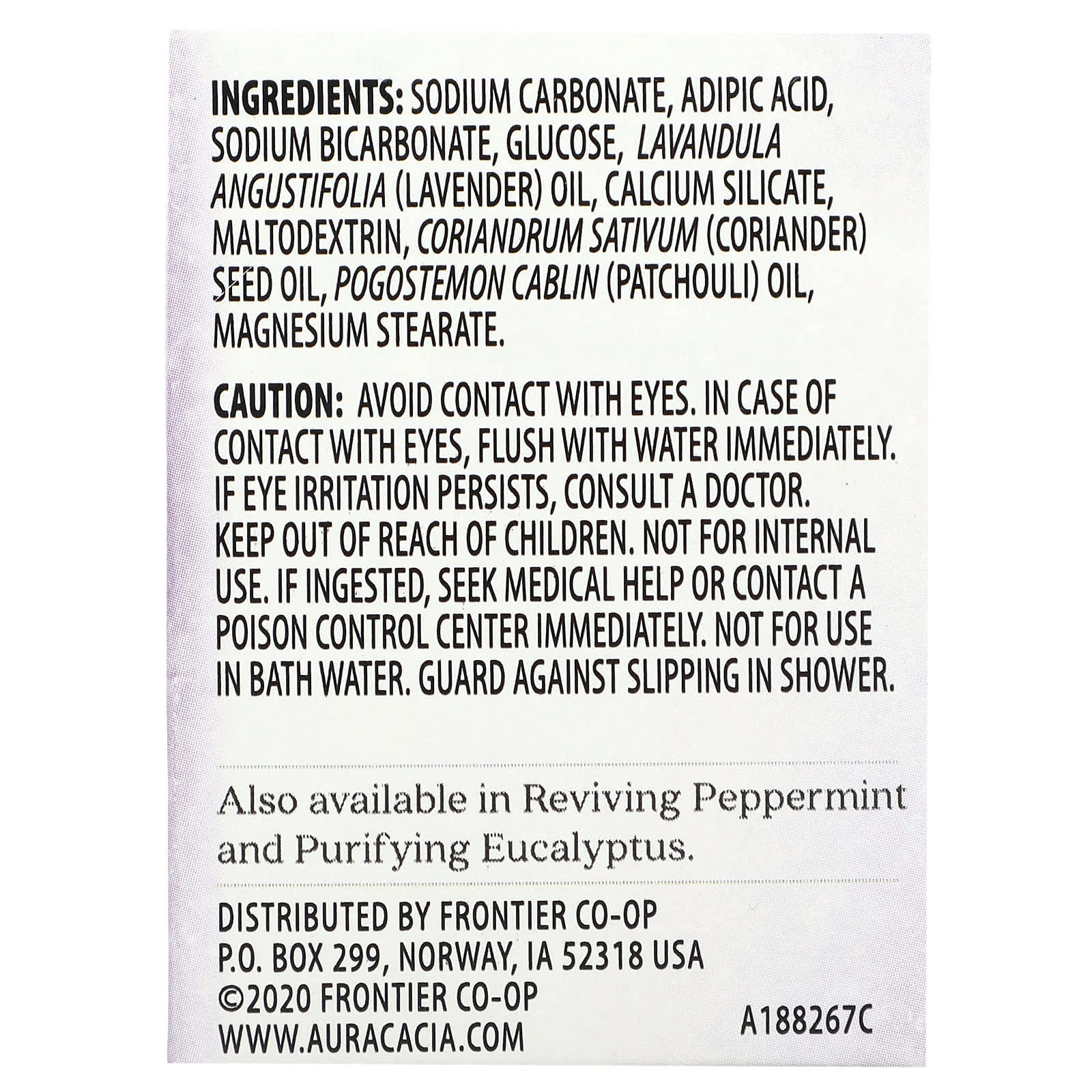 Карбонат натрия, адипиновая кислота, бикарбонат натрия, глюкоза, органическое масло лаванды, масло лаванды, силикат кальция, мальтодекстрин, органическое масло семян кориандра (кориандр), органическое масло растительного масла капулина (пачули), стеарат магния.