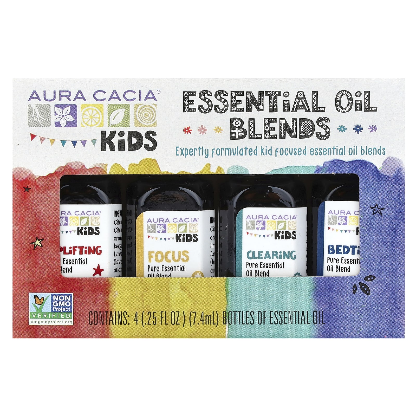 Aura Cacia, для детей, смесь чистых эфирных масел, для бодрости, 7,4 мл (0,25 жидк. унц.) Aura Cacia, для детей, смесь чистых эфирных масел, Focus, 7,4 мл (0,25 жидк. унц.) Aura Cacia, для детей, смесь чистых эфирных масел, очищение, 7,4 мл (0,25 жидк. унц.) - Aura Cacia, смесь чистых эфирных масел для детей, перед сном, 7,4 мл (0,25 жидк. унц.)
