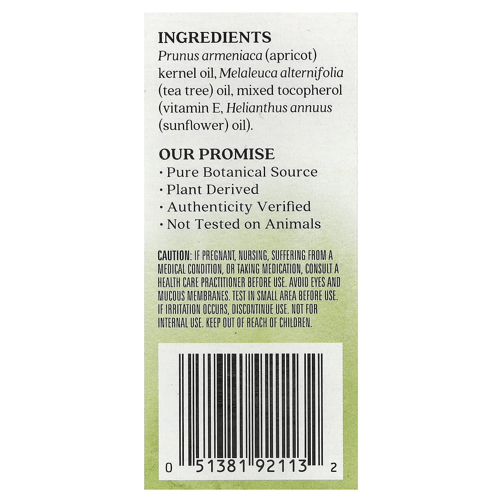 Масло из косточек абрикоса (Prunus armeniaca), масло чайного дерева (Melaleuca alternifolia), смешанный токоферол (витамин E, подсолнечное масло [Helianthus annuus]).
