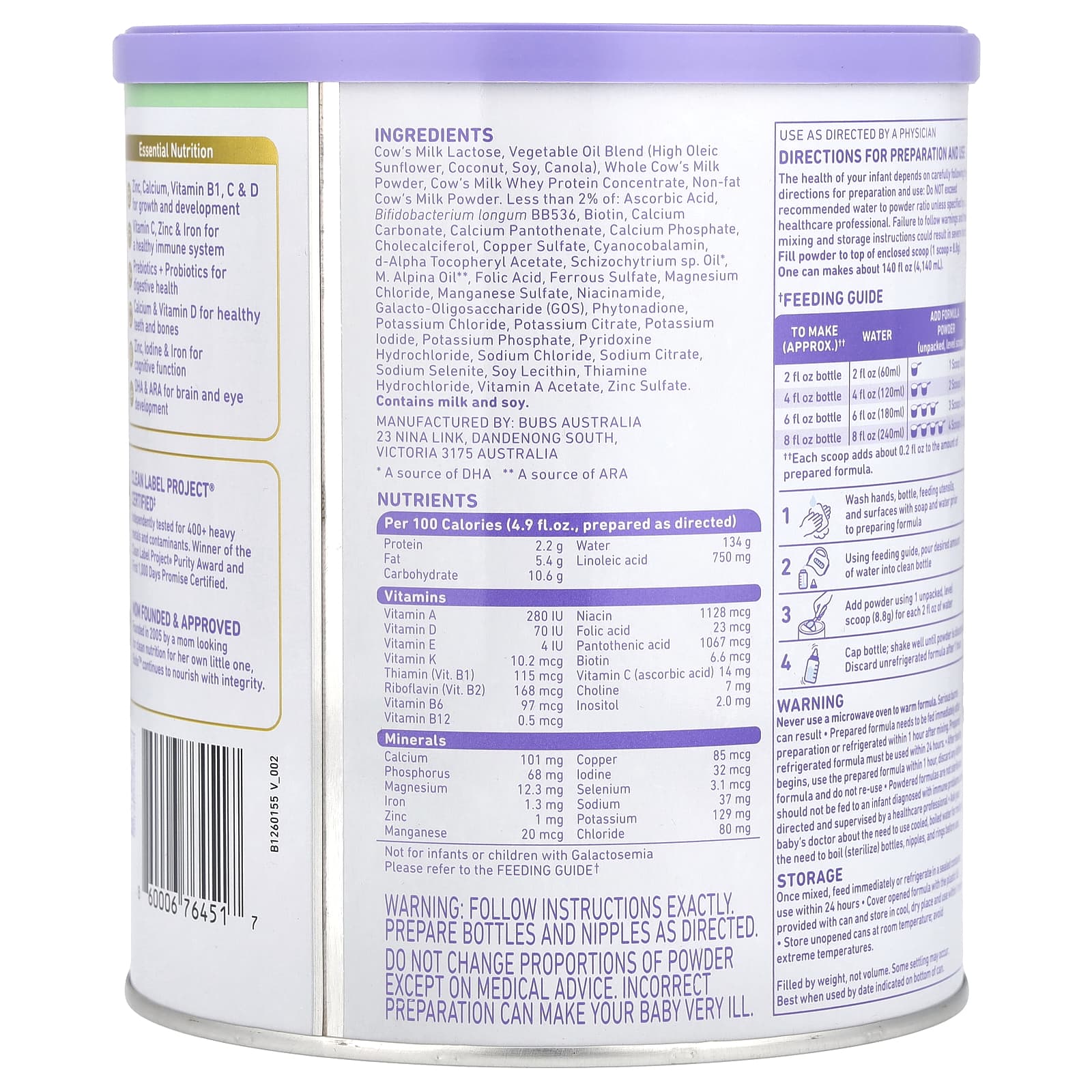 Смесь для кормления грудью на основе коровьего молока от Bubs ™ в течение 365 дней производится в Австралии из цельного жирного молока от счастливых, здоровых коров. Как и все наши формулы, он не содержит кукурузного сиропа, мальтодекстрина, искусственных ароматизаторов и красителей.