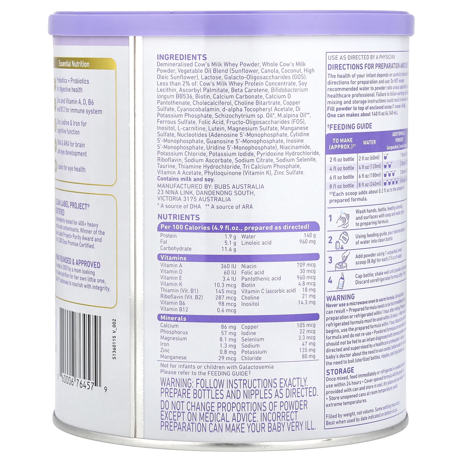 Импортная формула премиального качества: Все смеси Bubs ™ производятся в Австралии в соответствии со строгими правилами, обеспечивающими безопасность детей.