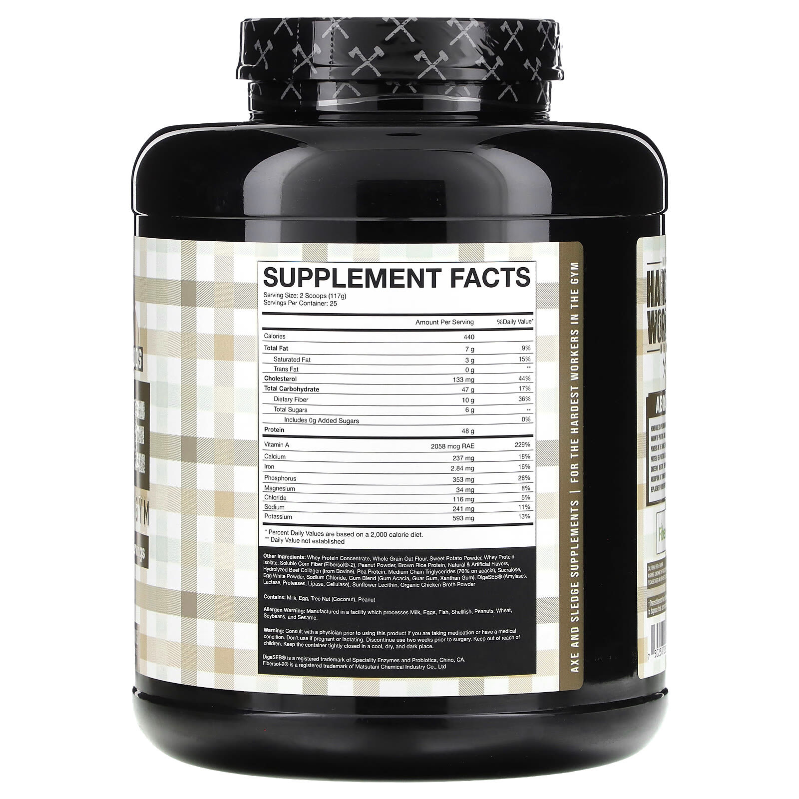 Концентрат сывороточного протеина, цельнозерновая овсяная мука, порошок из батата, изолят сывороточного протеина, растворимая кукурузная клетчатка (Fibersol®-2), арахисовый порошок, протеин из коричневого риса, натуральные и искусственные ароматизаторы, гидролизованный говяжий коллаген (из крупного рогатого скота), гороховый протеин, среднецепочечные триглицериды (70% из акации), сукралоза, порошок из яичного белка, хлорид натрия, смесь камеди (аравийская камедь, гуаровая камедь, ксантановая камедь), DigeSEB® (амилаза, лактаза, протеазы, липаза, целлюлаза), подсолнечный лецитин, порошок из органического куриного бульона.