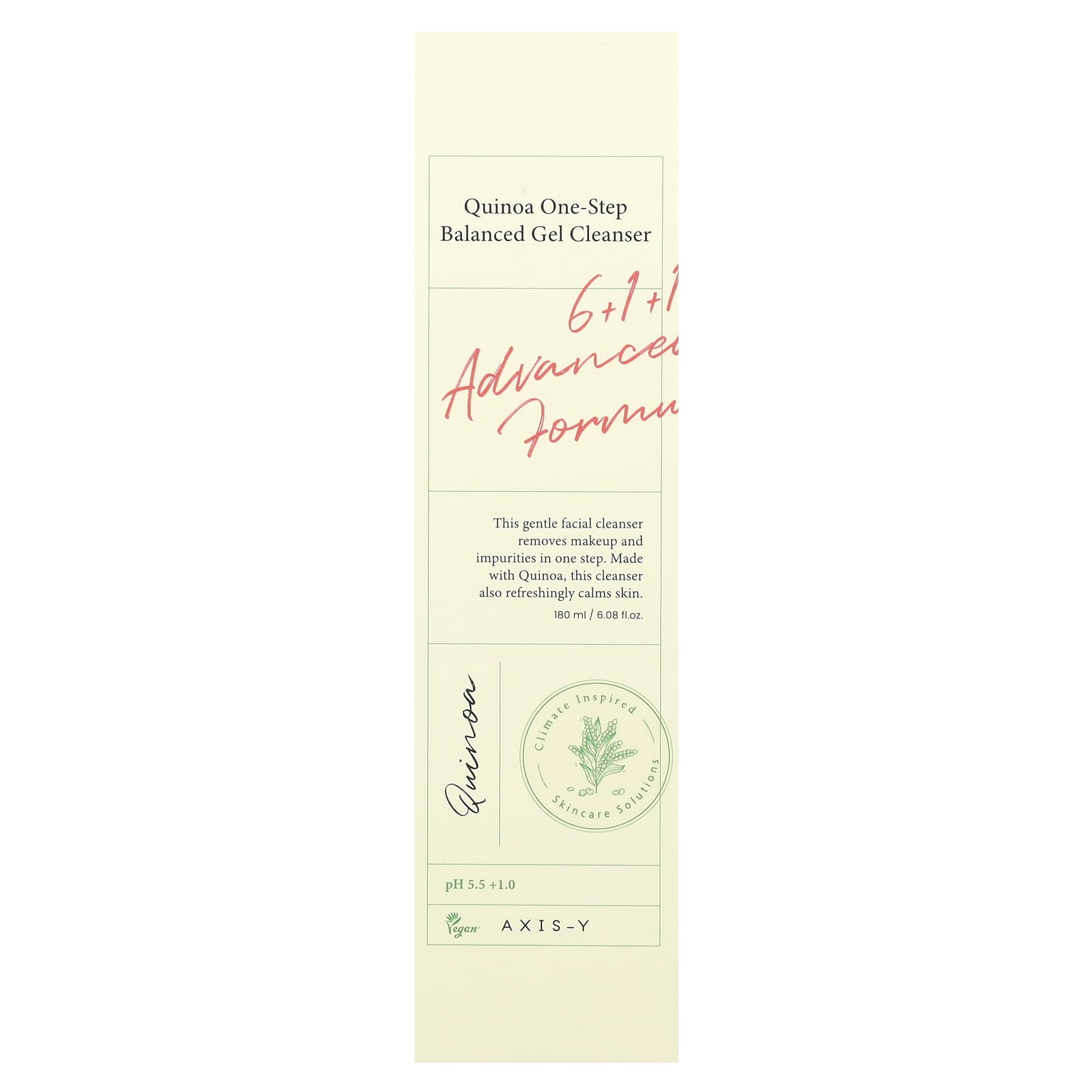 Сбалансированный очищающий гель с киноа One-Step от AXIS-Y имеет уникальную формулу, содержащую натуральные ингредиенты премиального качества, такие как киноа, зеленый чай, готу колы (Centella asiatica) и масло сладкого миндаля, которые нежно и увлажняюще очищают кожу, поддерживая уровень pH 5,5.