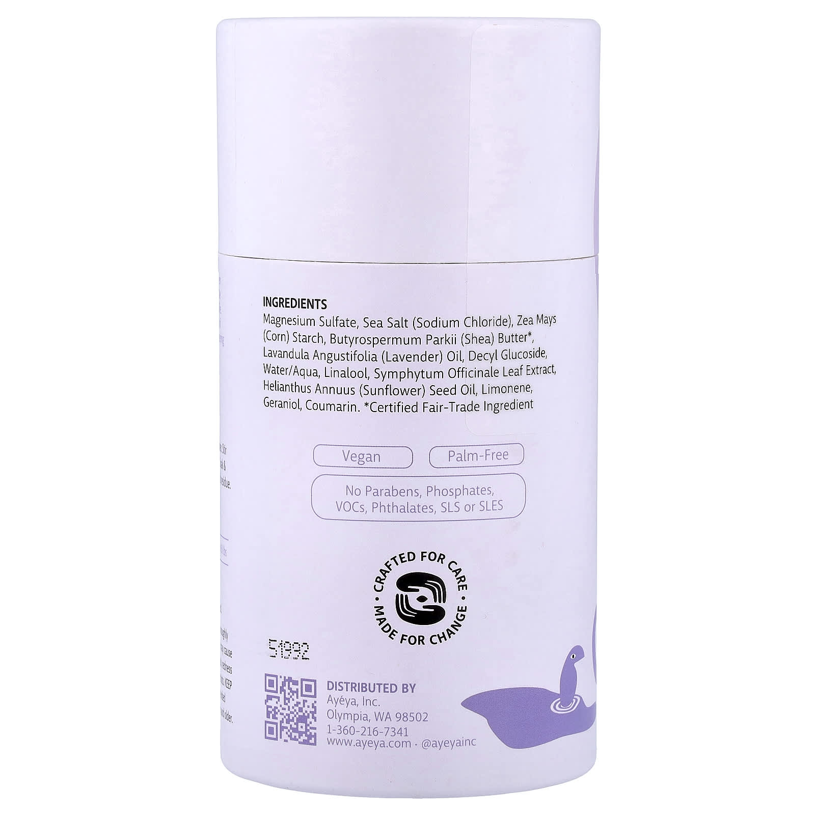 Сульфат магния, морская соль (хлорид натрия), кукурузный крахмал (Zea mays), масло ши (Butyrospermum parkii)*, лавандовое масло (Lavandula angustifolia), децил глюкозид, вода/аква, линалоол, экстракт листьев горянки (Symphytum officinale), подсолнечное масло (Helianthus annuus), лимонен, гераниола, кумарин.