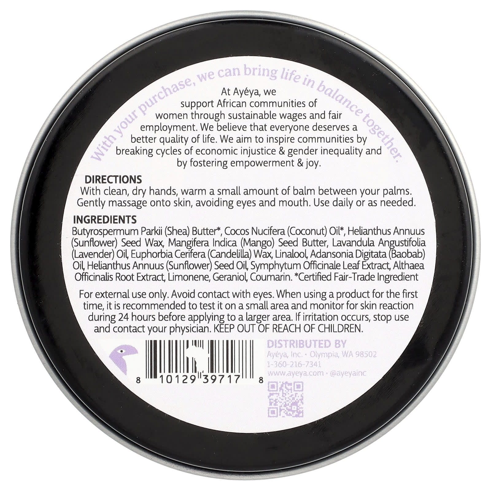 масло ши (Butyrospermum parkii)*, кокосовое масло (Cocos nucifera)*, воск из семян подсолнечника (Helianthus annuus), масло из косточек манго (Mangifera indica), лавандовое масло (Lavandula angustifolia), канделильский воск (Euphorbia cerifera), линалоол, масло баобаба (Adansonia digitata), подсолнечное масло (Helianthus annuus), экстракт листьев горянки (Symphytum officinale), экстракт корня алтея (Althaea officinalis), лимонен, гераниола, кумарин.