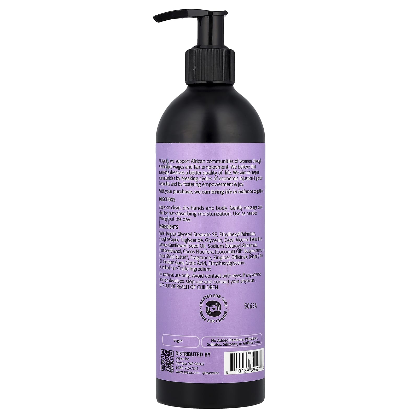 Вода, глицерил стеарат эмульгирующий, этилгексил пальмитат, каприловый/каприновый триглицерид, глицерин, цетиловый спирт, подсолнечное масло (Helianthus annuus), натрия стеароил глутамат, феноксиэтанол, кокосовое масло (Cocos nucifera)*, масло ши (Butyrospermum parkii)*, отдушка, масло корня имбиря (Zingiber officinale), ксантановая камедь, лимонная кислота, этилгексилглицерин.