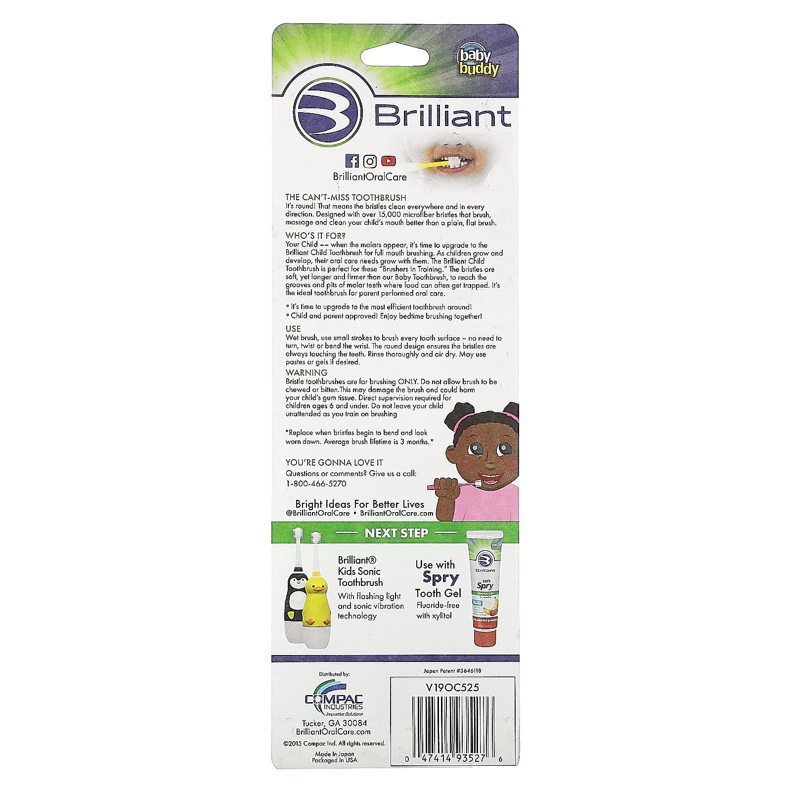 Ваш ребенок: когда появятся моляры, пора перейти на детскую зубную щетку Brilliant для чистки всей полости рта. По мере роста и развития детей растут и их потребности в уходе за полостью рта. Детская зубная щетка Brilliant идеально подходит для обучающихся чистке зубов. Мягкие щетинки, но длиннее и крепче, чем у нашей детской зубной щетки, достают до пазов и ямок на молярах, где часто может оставаться пища. Это идеальная зубная щетка для ухода за полостью рта, которую выполняют родители.