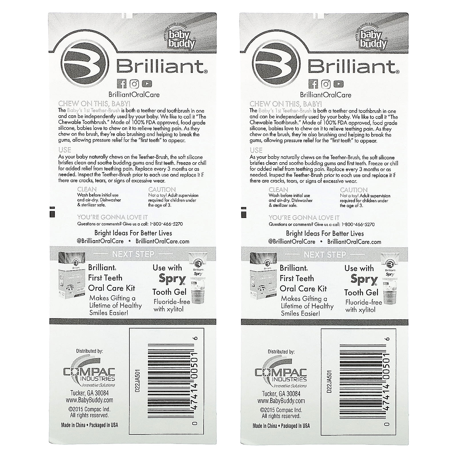 Первая щетка для прорезывания зубов для детей является и прорезывателем для зубов, и зубной щеткой, и ваш ребенок может использовать ее независимо. Нам нравится называть ее «Жевательная зубная щетка». Изготовленная из 100% пищевого силикона, одобренного FDA, дети с удовольствием жуют ее, чтобы облегчить боль при прорезывании зубов. Пережевывая щетку, они также чистят щетку и помогают повреждать десны, позволяя ослабить давление для появления «первых зубов».