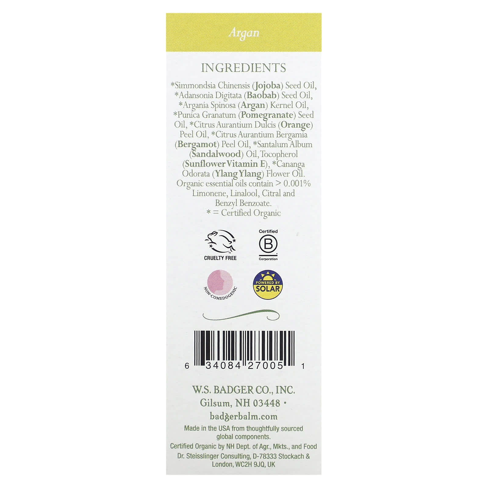 Масло для лица из барсука и арганы - это экзотическая сертифицированная органическая смесь ценных растительных масел, сбалансированная для всех типов кожи, делающая ее гладкой и сияющей. Эта цветочно-цитрусовая смесь содержит масло арганы, которое, как известно, обеспечивает превосходное увлажнение и антиоксидантную защиту.