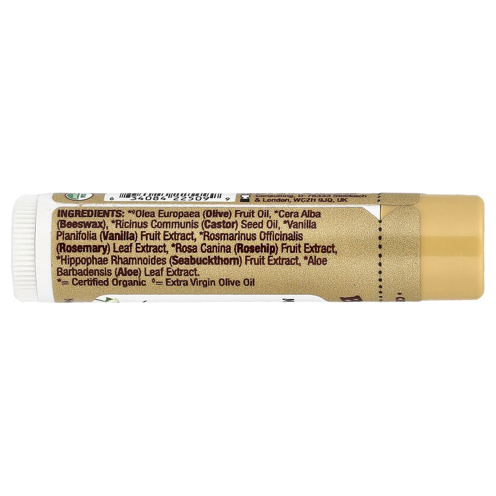 Оливковое масло (Оlea europaea)*◊, пчелиный воск (Сera alba)*, касторовое масло (Ricinus communis)*, экстракт ванили (Vanilla planifolia)*, экстракт листьев розмарина (Rosmarinus officinalis)*, экстракт плодов шиповника (Rosa canina)*, экстракт плодов облепихи (Hippophae rhamnoides)*, экстракт листьев алоэ вера (Aloe barbadensis)*.