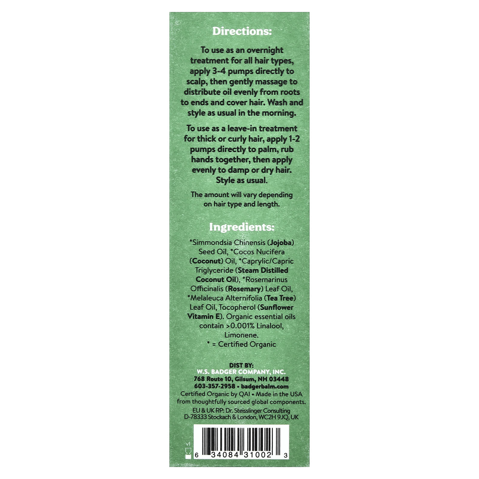 Масло семян жожоба (Simmondsia chinensis)*, подсолнечное масло (Helianthus annuus)*, масло из листьев розмарина (Rosmarinus officinalis)*, * ментол, масло из листьев чайного дерева (Melaleuca alternifolia)*, масло из листьев перечной мяты (Mentha piperita)*, масло из цветков лаванды (Lavandula angustifolia)*, токоферол (витамин Е из подсолнечника). Органические эфирные масла содержат > 0,001% линалоола, лимонен.