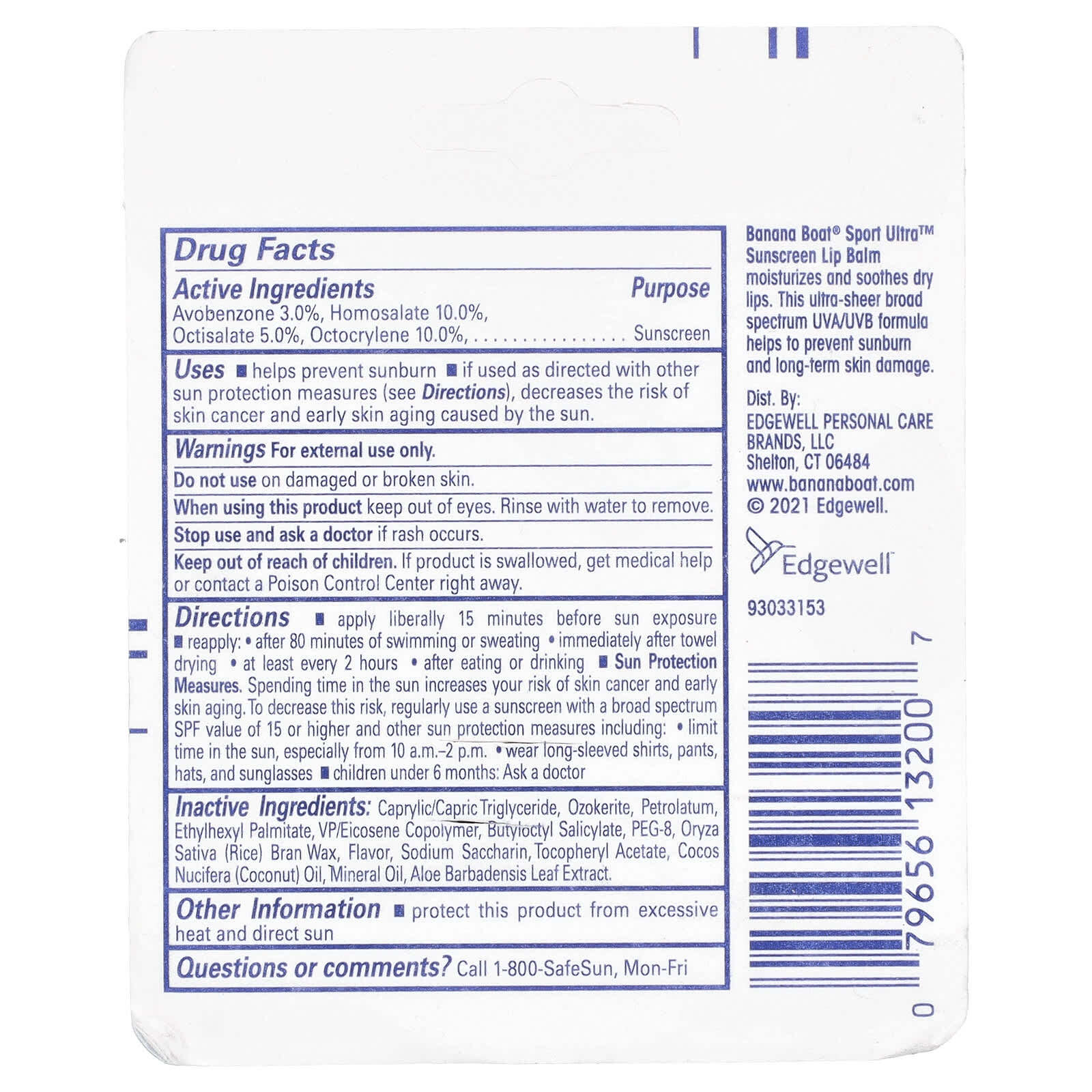 Солнцезащитный бальзам для губ Banana Boat® Sport Ultra ™ увлажняет и успокаивает сухие губы. Эта ультрапрозрачная формула широкого спектра UVA / UVB помогает предотвратить солнечные ожоги и долгосрочное повреждение кожи.
