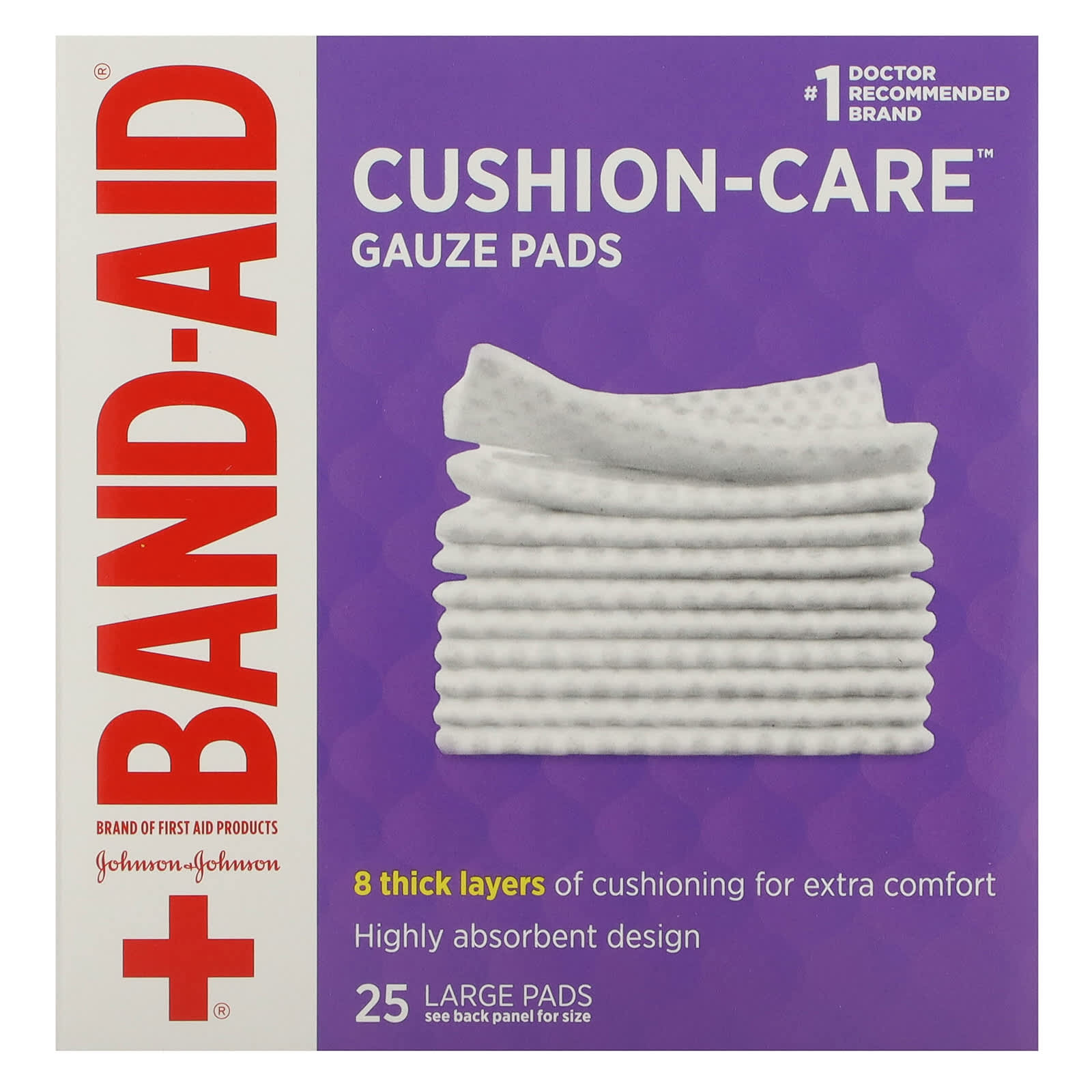 Band Aid, Cushion-Care, марлевые салфетки, большие, 25 шт.