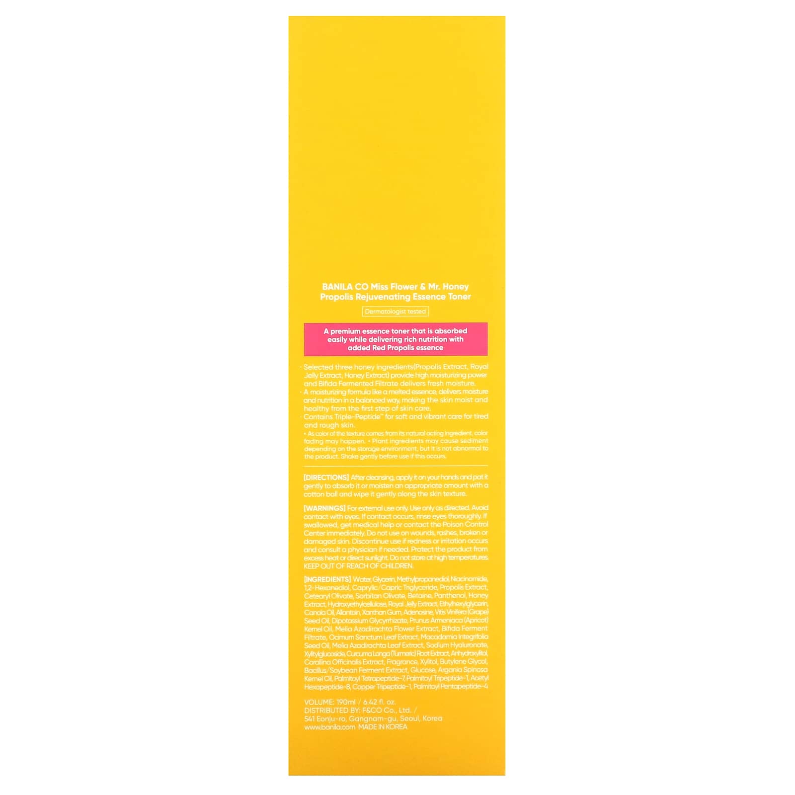 Эссенция-тоник премиум-класса, которая легко впитывается, обеспечивает богатое питание с добавленной эссенцией красного прополиса