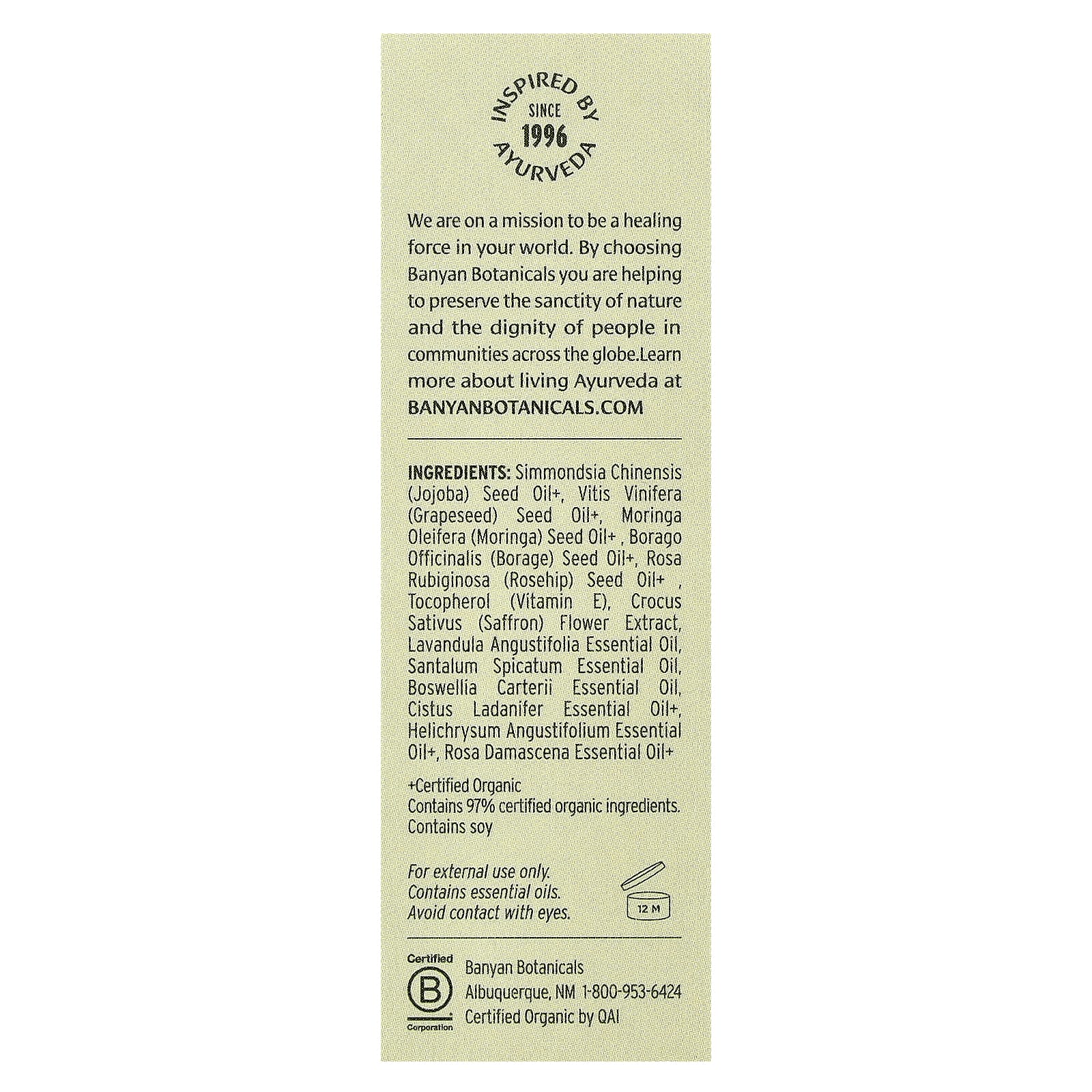 Масло семян жожоба (Simmondsia chinensis). масло из косточек винограда, масло семян моринги (Moringa oleifera) , масло семян бурачника (Borago officinalis), масло семян шиповника (Rosa rubiginosa) + токоферол (витамин Е), экстракт цветков шафрана (Crocus sativus), эфирное масло лаванды узколистной, эфирное масло сантала шиповника, Эфирное масло босвеллии (Boswellia carterii), эфирное масло дамасской розы.