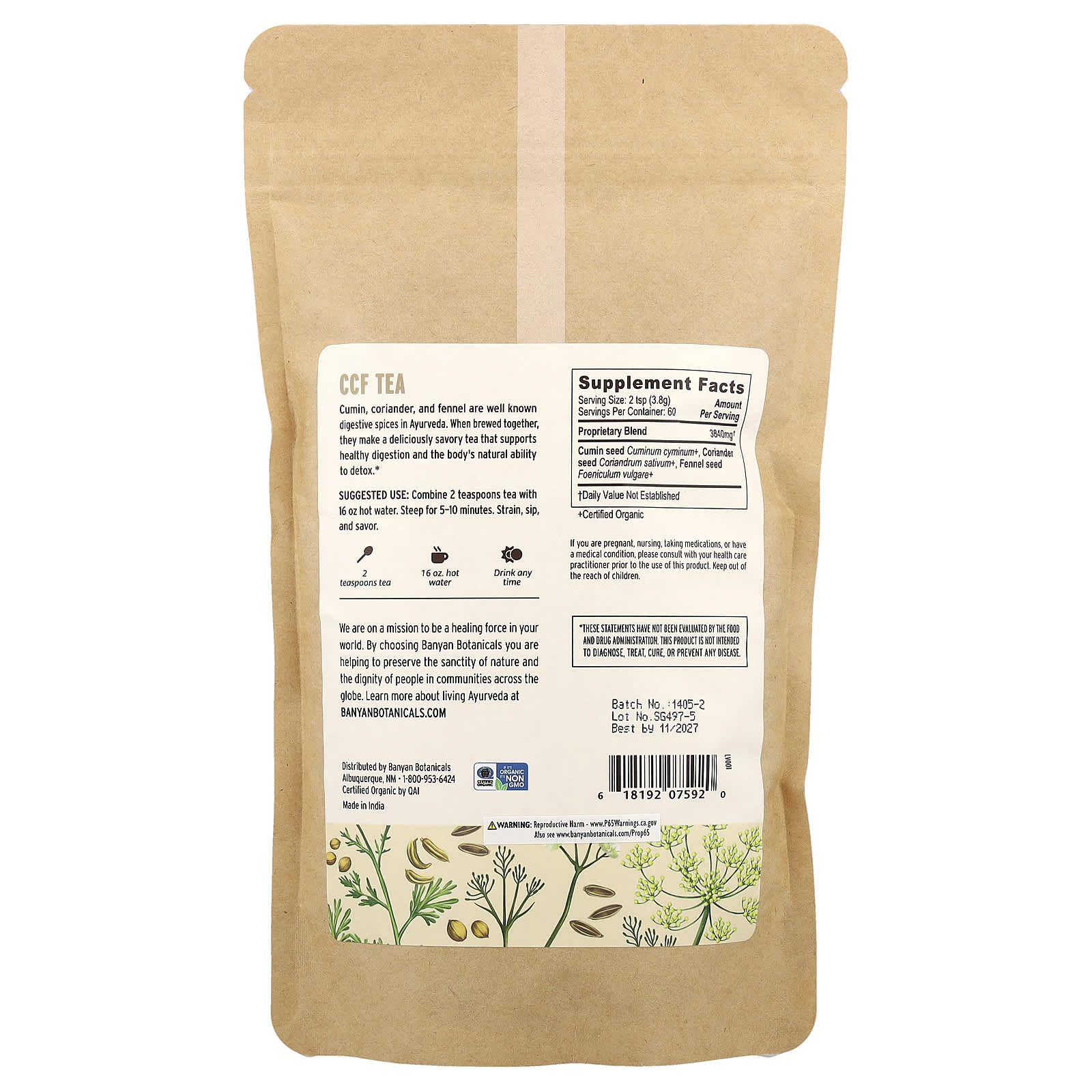 Тмин, кориандр и фенхель - хорошо известные аюрведические специи. Из них получается восхитительно пикантный чай, который поддерживает здоровое пищеварение и естественную способность организма к детоксикации.