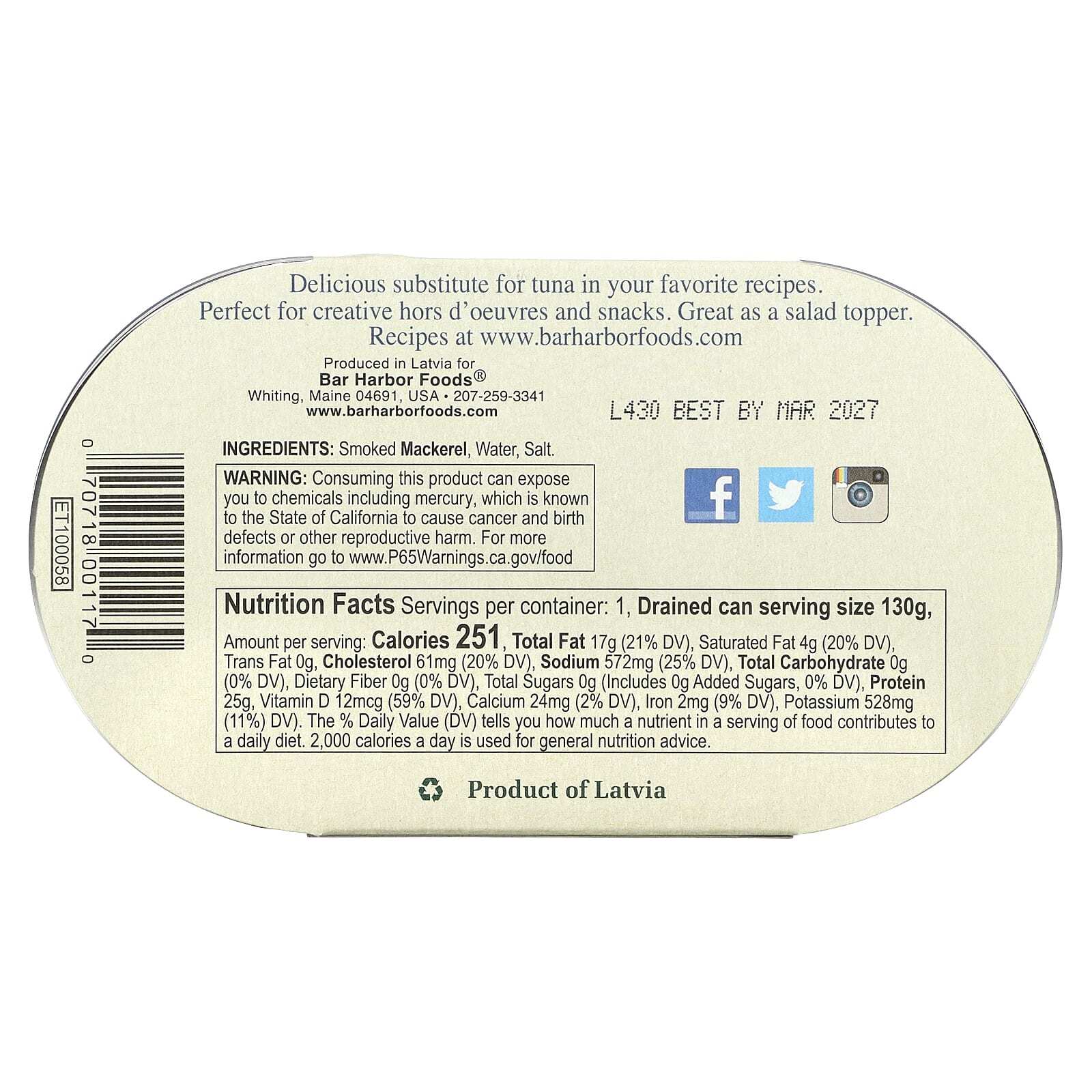 Копченая скумбрия, вода, соль.
