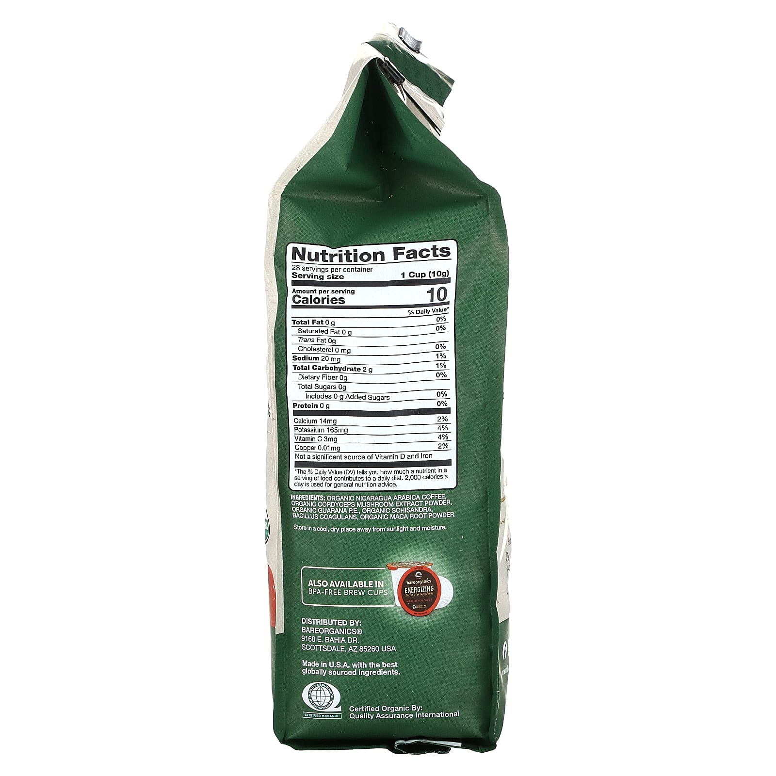 Органический кофе никарагуа арабика, порошок экстракта органического гриба кордицепс, органическая гуарана, органический лимонник, бактерии бациллус коагуланс (Bacillus coagulans), порошок из органического корня маки.