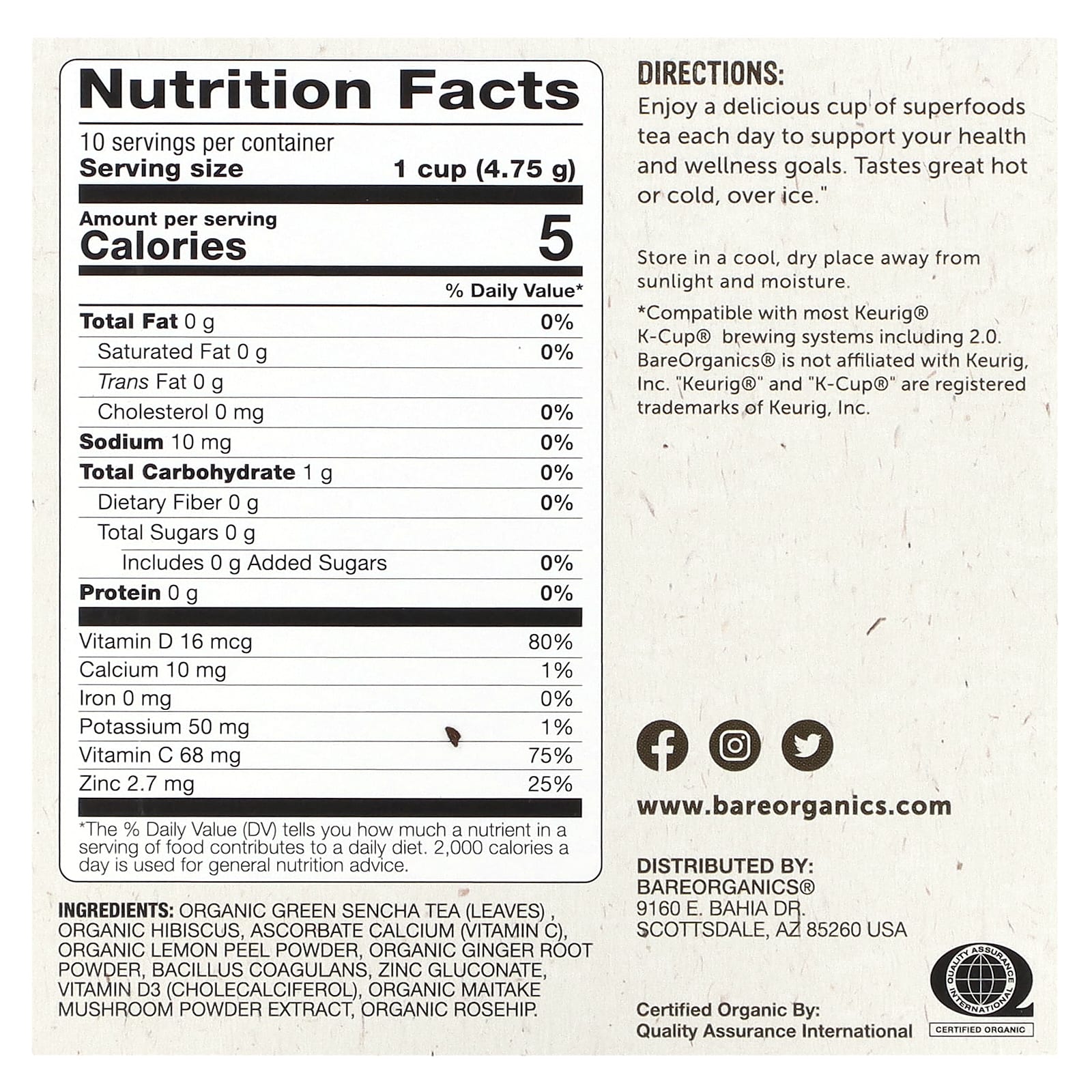 BareOrganics стремится предоставлять простые и качественные продукты без ГМО, химикатов и вредных добавок. Каждая из наших смесей содержит органические суперфуды, которые помогают поддерживать ваше здоровье, и все это в отличной чашке чая.